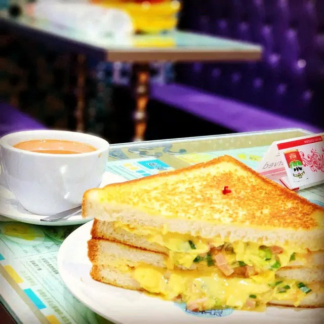 每次经过都见到有一大班人排队,今次都唔例外,店员都好好,入去之前会问定你食咩先安排入座,好彩只系排咗10分钟就入到去。我哋就叫咗个全包宴🍞🔹芝士煎蛋猪扒包 $36加$8配印尼捞面芝士煎蛋猪扒包系半岛冰室名物,第一次黎既我地一定要试试!猪扒劲厚身,芝士流晒出黎,卖相好吸引😋男仔黎讲食晒成个应该都少饱。不过猪扒有少少干,唔够酱汁,令到成个包都干干地。另外加配既印尼捞面同平时做法唔同,佢地落左比较少既调味,用黎配其他食物应该唔错。🔹半岛三文治 $43加$6配蒜蓉包半岛三文治即系公司三文治,有四旧同埋劲足料😋有生菜、蕃茄、芝士、火腿、午餐肉同鸡蛋,最有印象系佢个午餐肉,系煎咗先整三文治🤤每一啖食落去都劲多料劲丰富,正🤩最值得一提就系加$6叫咗个蒜蓉包😍佢系半块厚面包,仲要两面都搽咗蒜蓉酱先去烘🤤劲正,一定要加钱食😋🔹黄金粒粒花生酱西多士 $34呢个西多同其他茶餐厅唔同之处系真系粒粒花生粒系个西多入面😍劲有口感,而且花生酱唔会话好甜。男朋友就觉得糖浆啱啱好,我就食开西多系多糖浆,之后叫咗个店员加糖浆,以为佢用只碟仔分开上,点知佢一Pat唧落嚟,落咗劲多,但我男朋友就食咗两旧劲甜嘅西多🤣呢间小店值得一提嘅系佢嘅分工真系好唔错,佢哋配合得好好。我哋食唔晒叫咗一个外卖盒,一个店员就同厨房讲,之后厨房拎咗会叫「食物盒拎咗」,之后pack紧外卖嘅店员就会话「边个要食物盒?」之后店员就会拎过嚟。…查看更多