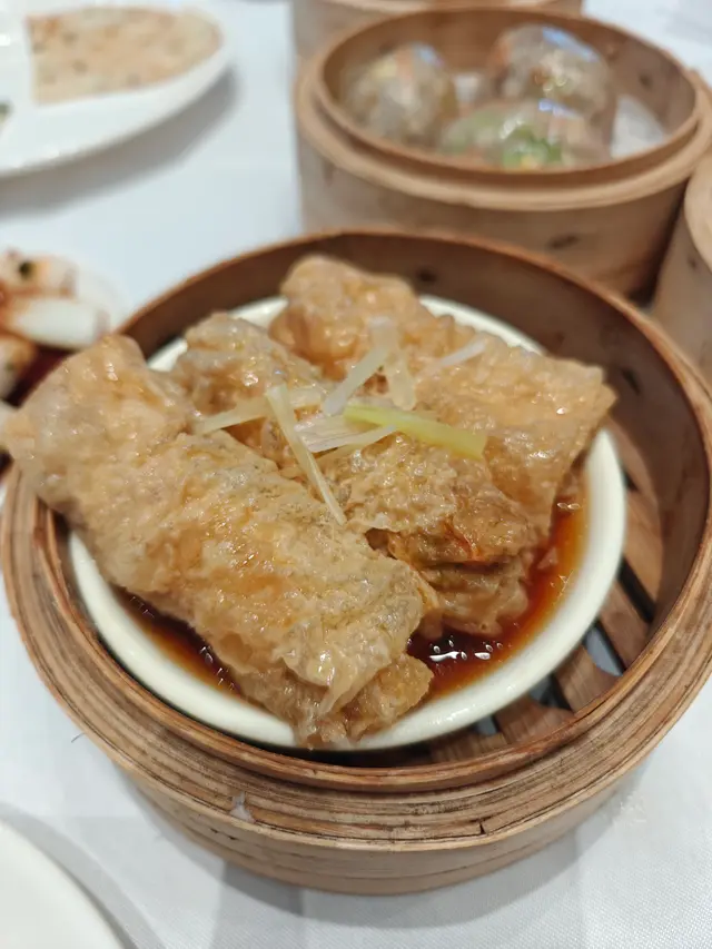 半島喺將廣開咗多年,真係第一次幫襯佢。本身諗住佢咁大集團應該有啲管理啦,點知叫咗開茶10分鐘都冇茶到,伙記不停兩個兩個咁吹水。。。。冇人理豬腳薑黑醋味道不足,豬腳則炆得唔錯,而蛋嘅色水就差少少蘿蔔糕偏向粉漿重啲,不過蘿蔔味都足,唔錯煎薄撐厚身唔係薄撐😅 粉漿味濃蠔皇鮮竹卷鮮竹卷餡料十足,飽滿,蠔油汁冇過稠變漿糊,做得唔錯👍紅棗糕非一般紅棗糕。雖然佢冇落薑汁做,但係用埋紅棗肉去蒸,真少見,紅棗味濃郁野菌素菜餃眼睇已經有答案👍 皮薄、煙韌、足餡,調味適中,真係出色燒腩卷得兩件,不過大卷嘅,餡料嘅芋頭同腩肉都非常靚,芋頭粉淋,腩肉入味仲半肥瘦燒賣3粒特價$18.8,三人飲茶仲好分,而且比出面嘅價位平 肉質爽彈查看更多