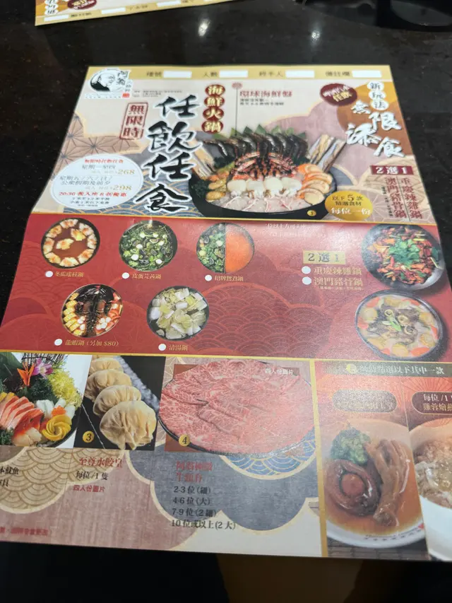 半岛渔港/阿翁火锅馆 📍观塘秀茂坪秀明道101号秀茂坪商场2楼203号舖火锅任食任饮一价全包!人均不到$300 轻松食到饱系到可以食到时令海鲜位盘,每日由厨师新鲜挑选有带子、青口、龙趸片、鲍鱼、墨鱼、海虾!仲跟埋阿翁牛颈脊!油花分明、牛味浓郁!仲有仲有刺身拼盘、鸡蓉烩燕窝、至尊水饺皇劲正汤底款式众多~我地叫左皮蛋芫荽马蹄汤底清热下火~现场仲有啤酒、汽水任饮~多达数十款火锅配料任点仲有食物自助区自己拿!好抵食啊半岛渔港/阿翁火锅馆 (观塘)⭐️观塘秀茂坪秀明道101号秀茂坪商场2楼203号舖