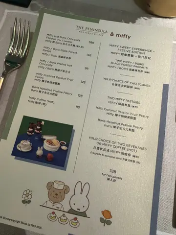 从 social media 得知酒店精品店与咖啡厅推出miffy圣诞限定,第二日就打电话去订位。订一人座但得到round table(张张都系round table),非常高兴,仲有miffy同boris背垫,可以打卡,摆背脊都舒服。是日只有黑森林芭菲同榛子朱古力,对一人胃来说好可以。因为冇去到中秋节嘅crossover,所以好想叫一杯饮品,所以叫齐两样。Miffy朱古力芭菲Miffy造型嘅马卡龙好得意,亦都系呍尼拿夹心。芭菲除咗有双球雪糕,仲有朱古力杏仁饼同朱古力蛋糕,食朱古力雪糕可夹埋blackberry 来食,可以食晒亦不会太腻。Boris榛子朱古力唔记得影相,砌返个型补拍。成件事有层次感,但并不是平日轻易尝到的榛子味,感觉很贵格,亦很喜欢boris马卡龙的朱古力味道。…查看更多