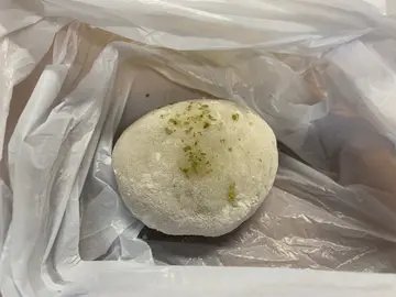 呢排好多食物都钟意用开心果做材料,呢间老字号饼铺都唔例外,于是我都试吓一个盛惠8蚊嘅开心果糯米糍体积正常,出面层皮好软腍腍,好软熟,入面啲开心果馅都几澎湃,有好多开心果同芝麻,不过开心果味比较淡,亦食唔出芝麻嘅香味。佢入面湿湿地,应该系啲糖溶左,啲开心果粒同芝麻散修修咁,唔系好blend到。纯粹以开心果糯米糍黎讲,可以一试,但无下次