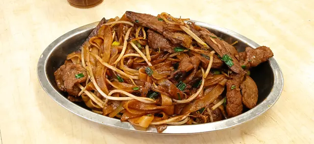 豬潤牛肉炒油麵送綠豆涼粉糖水