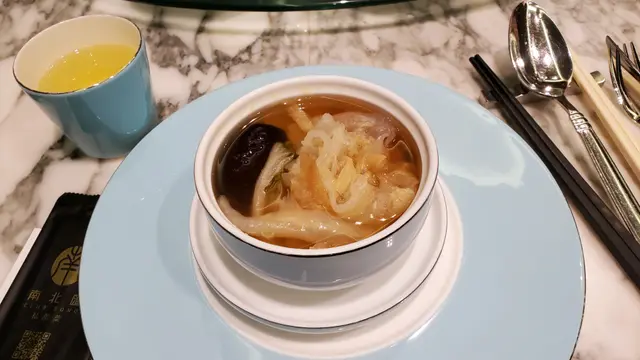 私隱質素一樣高 JoeSio等级42024-05-182K 浏览 关注 尖沙咀有間高級食肆:南北匯,全部都係包房,私隱度高,而且每間房都有卡拉Ok,可以一邊食一邊唱,最夜可以唱到零晨兩點食物方面以套餐為主,價錢由$500幾至$2000,豐儉由人前菜麻油黑木耳話梅蕃茄,麻油特別香,應該係靚料。蕃茄酸咪咪,幾開胃鮑魚萵筍絲,鮑魚雖然細位,味道都濃,萵荀絲就夠爽口琥珀合桃,正常發揮棗皇竹笙燉鳳尾翅,超大粒紅棗,所以叫棗皇,非常清甜,成個燉湯好足料,好飲又潤喉鮑魚扣鵝掌北菇,全部料都好入味,鮑魚 Size唔細,鵝掌更炆到一入口就脫骨,食得好方便乾邑鵝肝煎帶子,新奇組合,帶子並非煎到全熟,個心仲帶少少生,食得出係刺身級。鵝肝就煎到表皮超脆,裡面半溶狀態,極邪惡XO碧綠醬炒雙蚌,雙蚌分別珊瑚蚌及象拔蚌,炒得夠獲氣,生熟程度剛好,唔會過韌,調味適中,好食瑤柱翡翠炒𢇁苗,應該係飯粒先浸蛋液,然後先攞去炒,咁就可以做到粒粒飯都有蛋黃包裹嘅效果,又靚又好食鮮奶燉燕窩,鮮奶甜味輕,入口滑嘟嘟,燕窩分糧都唔少,食完飽上加飽另外仲有鮮果同Haagen-Dazs,忍唔住又食哂,滿足…查看更多+ 8以上食记乃用户个人意见 , 并不代表OpenRice之观点。赞好分享私隱質素一樣高 南北匯 https://s.openrice.com/QrLT0aNHJ00检举 张贴 评分5味道5环境5服务5卫生4抵食用餐日期2024-05-11用餐途径堂食人均消费$700 (晚餐)