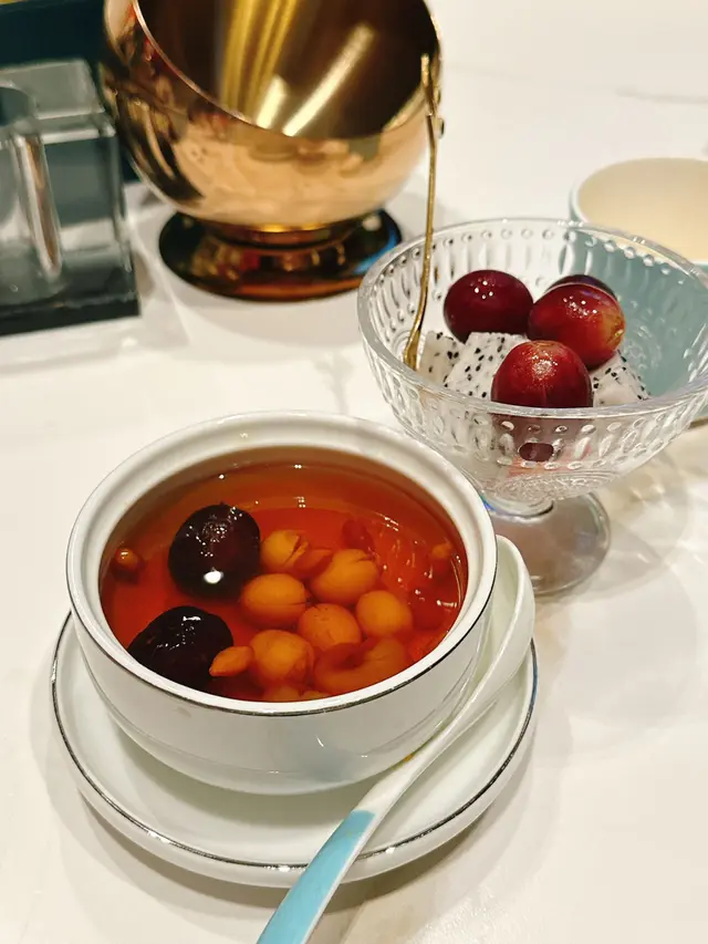 私隱度高🥰 winglingChan等级42024-06-034K 浏览 关注 經朋友介紹下,早前到訪了這間位於尖沙咀的高級精緻中式私房菜餐廳🤩,去到門前需按下門鐘才可入座,私隱度很高,感覺神秘🤣餐廳佔地5,800呎,劃分六間獨立房間,同時設有獨立洗手間及音響設備,空間寬敞,很適合與一班朋友或家人聚會😆✨幸運宴 $800 - 總廚發辦前菜一入座店員便送上六個前菜,包括漬青瓜🥒、糖心蕃茄🍅、豬肚、素腐皮、萵苣及炸春卷,配料很豐富,作為前菜,清新開胃😋- 潮洲凍蟹 (另+$180)另外加點凍蟹🦀,凍蟹方法更能有效鎖緊蟹肉鮮甜味道,肉汁豐盈,口感清爽👍🏻 - 鳳尾翅淮紅杞燉黑豚肉養生湯鳳尾翅份量十足,厚肉鮮甜🥰,配上大量淮山及豚肉配料煲成的湯底,色澤清澈,味道清甜,滋補又養生😝- XO醬花枝蘭花蚌蘭花蚌爽脆鮮甜,加入濃郁XO醬炒香,味道惹味香口😉- 百花鵝肝芝士盒外層炸至金黃酥脆,輕輕切開後即時流出芝士🧀,鵝肝味道濃香,做到香酥以不油膩,相當有驚喜😛- 福祿鮮鮑魚豬手鮑魚厚實軟腍,豬手炆至軟糯🐷,入口即化,簡單以蠔皇調味,提鮮得來又入味🤩- 東江客家鹽水雞雞皮爽脆,雞件嫩滑🐔,肉味香濃,配上沙薑醬汁,更能突出雞肉鮮味😚- 瑤柱扒田園時蔬時菜以鮮甜瑤柱醬汁調味😙,可惜味道過於濃郁,整體味道略鹹😗- 富豪海皇燴絲苗炒飯粒粒分明🍚,炒至乾爽,配上大量蝦仁🍤及火腿片配料,鹹香味足夠,口感豐富,香口而不油膩😎- 紅棗圓肉杞子糖水以大量紅棗、圓肉及杞子煮成的糖水🥣,味道清甜,配料豐富,滋潤又滿足❤️- 時令水果平時甚少機會到訪中式私房菜餐廳,今次終於有機會嘗試,果然食物質素很高👍🏻,加上服務態度很好,很期待下次與朋友再訪‼️…查看更多+ 8以上食记乃用户个人意见 , 并不代表OpenRice之观点。赞好分享私隱度高🥰 南北匯 https://s.openrice.com/QrLT03TnJ00检举 张贴 评分5味道5环境5服务5卫生4抵食用餐途径堂食