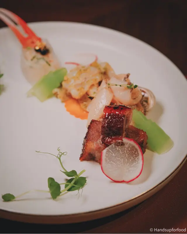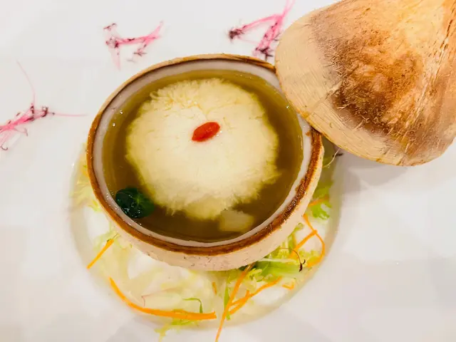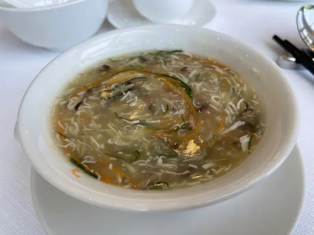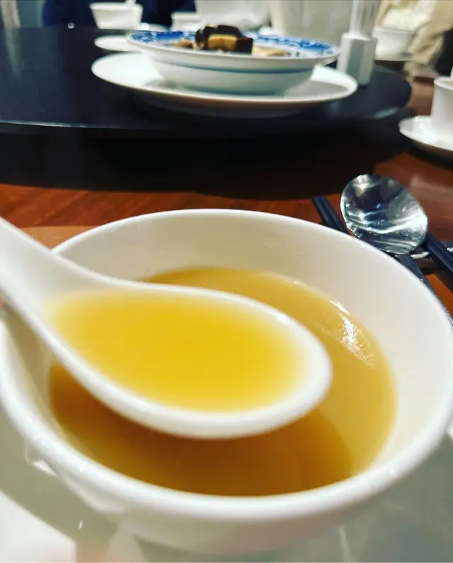 🍽️ 南坊 數碼港艾美酒旗下新派粵菜🥢裝潢走中西合璧路線✨高樓底配落地大玻璃🙌光猛開揚又帶啲典雅⚜️ 對任海景同山景!適合同屋企人一家大細黎食🥡✨前菜 1. 南坊叉燒蜜汁叉燒係鎮店之寶🔥用半肥瘦梅頭肉🤏醃足24小時再慢烤🫶外層焦香帶蜜糖脆邊🍯海蜇厚身爽脆🌊青瓜醃得入味但保留爽口✨酸辣醒胃🫶前菜嚟講超開胃! 🍲 湯品 3. 姬松茸花膠燉赤肉老火湯金黃清澈🍲飲落濃郁🤏花膠厚身軟糯✨精華全部溶喺湯裏🤏非常暖胃🍤 主菜 4. 碧綠彩燈炒蝦球斑球斑球同蝦球都好彈牙🐟🍤彩椒同蘆筍炒得翠綠爽甜✨鑊氣夠又唔油膩🤏 5. 杏汁銀杏腐竹浸時蔬清淡但絕唔寡淡~菜心浸喺奶白色杏汁湯底🥜腐竹吸滿杏仁香🤏整體溫潤帶杏仁香6.金腿汁鮑魚瑤柱雞粒燴絲苗鮑魚口感爽彈✨瑤柱絲鹹鮮帶甜🤏雞金腿汁濃郁但唔死鹹🙌絲苗飯吸盡精華仲保持粒粒分明👍🍯 糖水 7. 紅棗桂圓糖水紅棗去核唔燥✨桂圓肉厚甜香🤏加入杞子同片糖慢熬🥘湯色深紅透亮🤏飲落溫潤滋補…查看更多