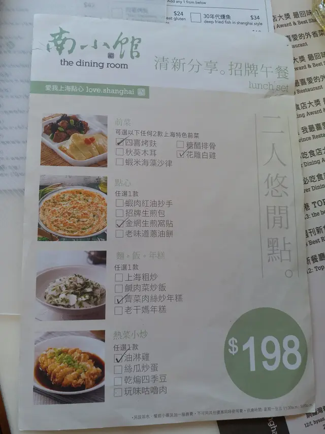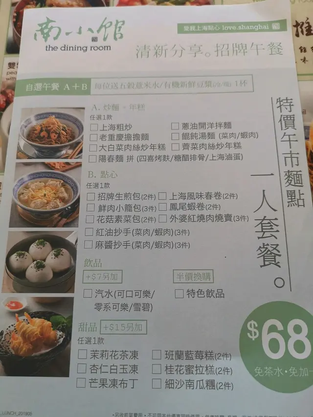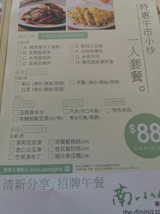 諗住今晚食下中菜 去左南小館 但真係食完覺得早知食譚仔好過雞絲粉皮食落冇咬口唔煙韌 青瓜絲唔新鮮 啲醬又冇花生味 奇奇怪怪 未試過食雞絲粉皮會食唔晒 因為真係食唔落口老上海酸辣粉湯底唔夠濃 酸又差啲辣又唔夠辣 係啲雲耳竹筍蝦嘅味道不錯老干媽茄子炒年糕 又係味唔夠濃 茄子炒得夠香 但始終食下食下會冇味 少失望鮮肉小籠包 湯汁又有一浸唔多新鮮嘅感覺 皮太厚 我諗超級市場買番嚟叮嚟食個啲小籠包仲好味過佢😞蘿蔔絲酥餅 第一次食 係幾好味 酥脆外皮配白蘿蔔香濃又惹味 可以再試總括嚟講冇咩事會去第二度食中菜 入面又裝修到九唔搭八咁 茶餐廳地板但有西餐燈飾 仲要播英文歌?! 但係佢係一間中菜館…查看更多