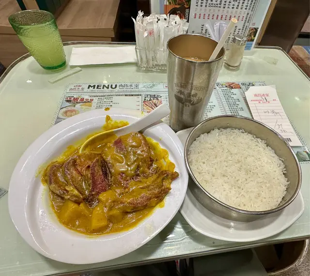 南昌冰室的咖喱牛脷飯和凍朱古力點了南昌冰室的咖喱牛脷飯和凍朱古力做晚餐, 外賣自取九折, 最後大約六十元, 都不算貴, 不過等時間偏久一點, 但都值得等, 我寧可店家好好製作, 而不是快, 但求其, 的確食物取到手是夠熱的, 這一點我是欣慰。咖喱味深得我心, 香口, 有咖喱的濃郁, 但完全不會過辣, 很適合我的口味。牛脷亦相當的軟, 如果可以去掉表皮就更理想, 因為牛脷的表層是比較韌一點的, 但現亦相當不錯, 有如慢煮的效果, 一盒大約四至五塊牛脷和四件薯仔, 份量比想像中少, 但咖喱汁絕對足夠拌好大約三分之二的白飯, 這間店的份量不算很多, 但都算是人合理, 價錢還好, 不及三餸飯那麼便宜抵食, 但牛脷都挺好吃的。朱古力不錯, 冰融掉了都沒有味道變淡, 仍是夠濃郁和夠甜的, 好喝。…查看更多