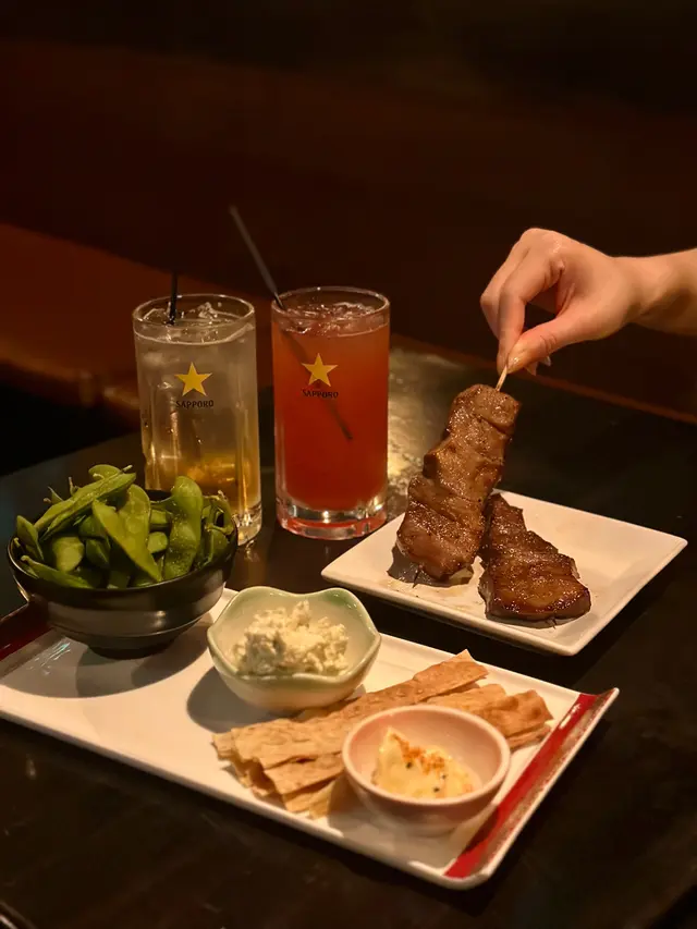 🍢日式串燒居酒屋 chan yan wing等级42024-01-12774 浏览 关注 食得多港式同川式嘅串燒,有時都要轉下口味!呢間日式串燒居酒屋🏮,室內裝修都係復古木系為主,用上多種清酒酒樽做裝飾,燈光昏暗,特別有feel!店員會就住客人進食嘅速度,逐串逐串咁上,環境唔會太嘈雜,適合同朋友一齊嚟吹水!------------------------------🫛◖枝豆◗ $40上面灑咗少少海鹽,咬啲脂豆出嚟同時有少少鹹味,食落更加鮮🧀◖梅水晶芥末芝士◗ $48呢個芝士加入芥末,有少少辣,仲有啲魚子,口感爽脆,整體酸味味,食多都唔會覺得膩,點鱈魚棒食幾正!🐟◖燒鱈魚棒◗ $45細細條,好薄脆,可以點沙律醬或者芝士一齊食!🐖◖露筍豬肉卷◗ $45爽口多汁嘅蘆筍包上豬肉片,拎去燒香,再加上少少胡椒鹽,特別香口,又唔會膩!🐂◖厚切牛舌◗ $78牛舌真係好大串,肉質厚實,油脂豐富,口感好彈牙!🐖◖荔枝豬肉卷◗ $40荔枝肉好飽滿,裹上豬肉片,滿滿嘅油香,果汁中和左油膩感,日式串燒必食!🐓◖自家製雞丸串◗ $45自家手打,夾雜雞軟骨,點上醬油蛋,外層燒到微焦,食落好有口感,帶有濃郁嘅蛋香!🐓◖雞中翼◗ $45有兩隻雞翼,開邊燒好,雞皮仲好香脆,🥒◖芝士翠玉瓜◗ $30翠玉瓜燒出嚟超多汁,舖上芝士炙燒過,鹹鹹地味道更豐富,芝士仲有拉絲!🍄◖白蘑菇◗ $28白蘑菇超Juicy,蘑菇嘅香氣碰撞胡椒嘅味道,簡單又超夾!🌟 Encore指數:8.6/10…查看更多+ 8以上食记乃用户个人意见 , 并不代表OpenRice之观点。赞好分享🍢日式串燒居酒屋 南蛮亭 https://s.openrice.com/QrLT0yzZJm0检举 张贴 评分5味道5环境5服务5卫生3抵食用餐途径堂食