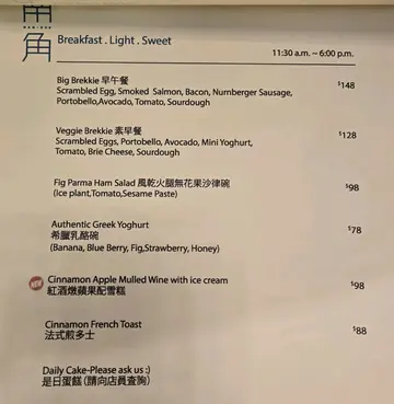 现在去九龙城第一时间已经不再是想起泰国菜,而是cafe!虽然越来越多cafe进驻,但我依然最喜爱南角。烟三文鱼酸忌廉酸种多士 ($88)好足料,烟三文鱼份量超多,酸种多士涂满cream cheese,一口𩠌一口多士 ,超满足!忌廉喇沙鸡肉长通粉 ($138)鸡肉嫩滑,喇沙味道香浓,长通粉相当入味,啖啖香辛惹味。斑兰椰啡 (+$48)招牌饮品,绝对是必喝的选择!卖相吸睛,椰奶配以浓郁的咖啡,加上一球椰子雪糕,再缀以斑兰叶,洋溢著热带风情。入口带有浓浓的椰子味,让人一口爱上!…Read More