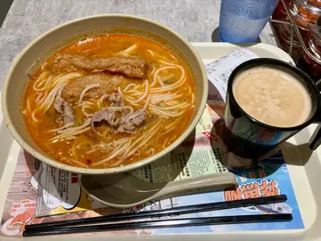 最近我喺南记粉面享用了佢哋嘅早餐,呢间系一家以粉面闻名的小店,早上嘅选择令我期待已久。首先,煮得恰到好处,滑顺而不黏。沙嗲酱嘅味道浓郁,仲带有微微嘅香辣感,令牛肉嘅鲜美更加突出。牛肥牛切得厚薄适中,肉质鲜嫩,口感非常满足。整体嚟讲,呢道菜嘅味道层次丰富,真系一试成主顾。再讲下牛角包,外皮松脆,内里柔软,散发住淡淡嘅奶香味。每一口都令我感受到烘焙嘅用心,真系一个完美嘅早餐搭配。至于炒蛋嘅蛋味十足,口感滑嫩,完全冇过多嘅调味,让人感受到最纯粹嘅蛋香。…查看更多