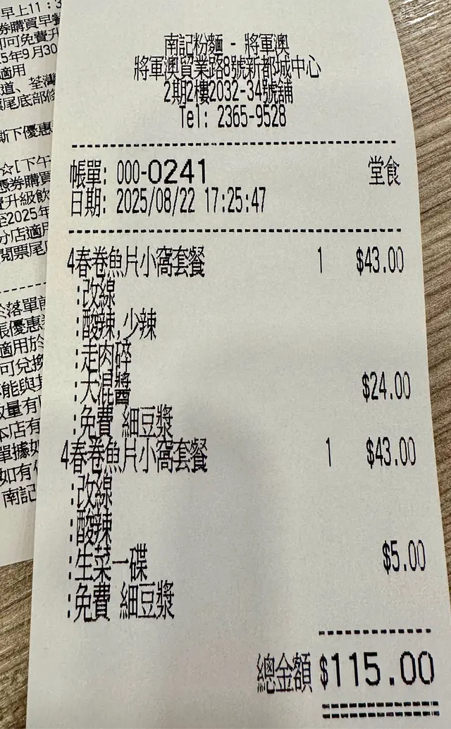 南記粉麵 (新都城中心二期)条款及细则: