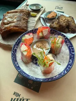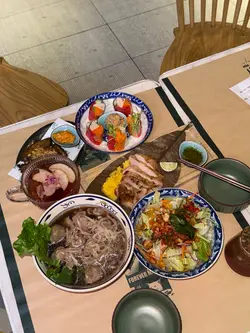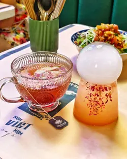 今日返工放半晝,所以就想搵個地方坐下休息吓~上網見到呢間樓上越南咖啡廳一於就一時究竟!!.咖啡廳大部份座位以梳化為主,坐落好舒服,而且有大玻璃射入陽光,冷氣充足,感覺舒服適合一個人休息,或者約埋三五知己一齊食個飯。.叫咗佢哋嘅招牌金邊粉,金邊粉滑溜而且掛湯,飲到湯底濃郁~而且非常足料,有兩大舊牛骨連肉,仲有牛筋、牛丸、生牛肉片,牛尾濃郁,而且食到唔同嘅口感!牛魔王必選🐮🐮我就比較鍾意食佢哋嘅生牛肉片,生熟程度啱啱好,而且好嫩滑~另外仲有油炸鬼、生菜、辣椒、青檸等不同配料,絕對可以調配出個人化嘅口味!.另外試咗佢哋兩款小食,分別係烤雞翼同脆米紙薄餅。脆米子薄餅絕對係開胃菜,而且層次口感都好豐富,有米紙嘅脆口、臘肉嘅鹹香、蘿蔔絲同青瓜絲嘅清新,配搭有趣,味道融和!兩個人share食就啱啱好啦~小編食唔晒打包咗,米紙就多咗一份煙靭感,同樣惹味~秘製炸萋葉雞翼調味特別,一食落又好香嘅香草味,㗳真啲又會有啲咸香,加上煎得香口保持到雞翼嫩滑,絕對係雞翼控必須要encore嘅選擇😂😂😂😂.飲品方面就揀咗柑桔檸檬綠茶,一上枱竟然係用玻璃樽裝,即刻有一個去咗越南嘅感覺,感覺好高尚😂🫣亦都係因為咁就算唔用冰杯飲其實都好夠凍,就咁飲會飲到好香濃嘅檸檬香,後尾慢慢就會滲出柑橘味,加咗冰飲反而令到入口多咗份冰涼感~啱晒而家熱辣辣嘅天氣🥹.餐廳仲推出左印花卡,儲夠印花仲可以減錢,真係抵到爛,下次可以叫埋朋友一齊黎食lu~…查看更多