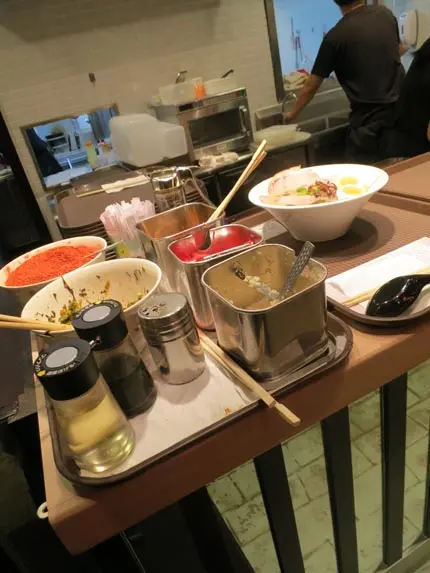 今日去IKEA買野,所以黎左Mega Box。一直好想試Ramen Champion,但係佐敦太唔方便,咁岩見到呢到有,即刻要去試試。牆上有電視不斷介紹不同的日本美食。係好有日式風味既範圍,入場會俾張卡黎,買拉麵就用呢張卡,食完走之前就拿張卡去俾錢,都幾方便。每一間都好落力叫賣自己有咩特色,行左一個圈先好決定到食邊間。落完單就會俾隻UFO既物體你,可以拎野食UFO就會閃燈,咁就坐到遠都唔怕聽唔到叫號碼啦。老公揀左試呢間,佢話要試佢個豚骨湯。豚骨濃湯特製拉麵