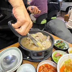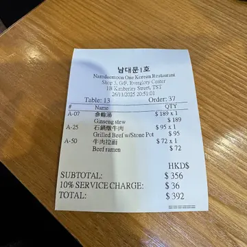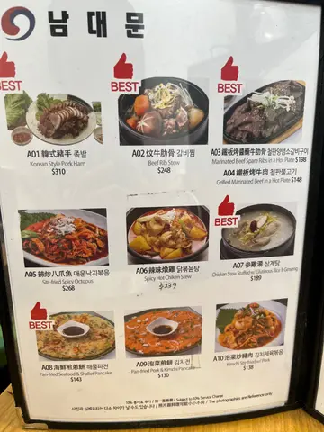 尖沙咀韩国街(金巴利街)一向都多人知,以前食过都觉得有d店唔错。今晚嚟到呢间 南대门韩国料理 ,价钱亲民之余,份量十分足,食落有种亲切嘅味道,好似妈妈煮嘅家的味道。坐低一阵,店员阿猪妈已经俾咗几碟韩国传统嘅前菜我哋,望落就知系自家腌渍,好有家庭嘅感觉。🍲 参鸡汤 呢道韩国传统滋补汤,用整只鸡加入红枣、人参、蒜头同糯米慢熬几小时。汤底饮落清甜滋补,带浓浓人参嘅香气,鸡肉够嫩滑,而且原只鸡份量十足,特别适合女士养生调理饮用,男士饮完就暖身又补气。🌶️ 海鲜辣豆腐汤(韩式嫩豆腐汤) 呢款以细嫩豆腐、各式海鲜如蛤蜊、虾、鸡蛋和葱花为主,配埋韩国辣椒粉炒出香辣汤底。汤汁浓郁带微辣,豆腐软滑,海鲜鲜甜加上洋葱甜味配白饭一齐食,刺激得嚟又滋味。🥘 石锅牛肉饭 热辣辣嘅石锅盛载著粒粒分明嘅白饭,铺满炒过嘅牛肉片,配搭紫菜、芽菜、菠菜、胡萝卜等配菜,层层滋味又丰富,石锅底嘅焦香饭焦亦十分吸引,食落仲多左种层次😋…查看更多