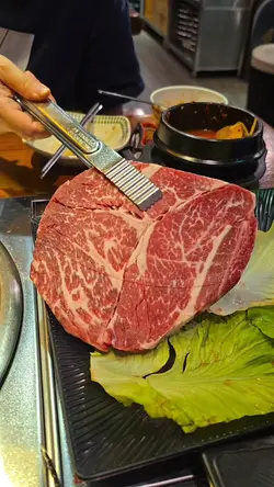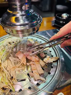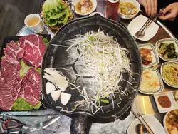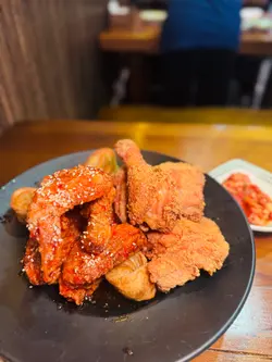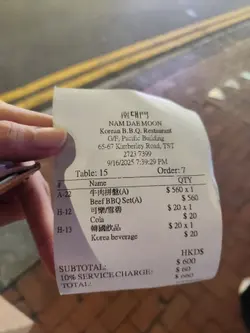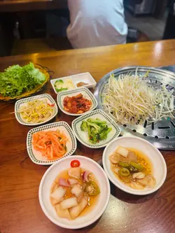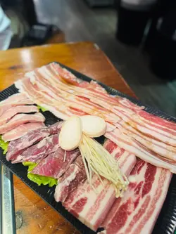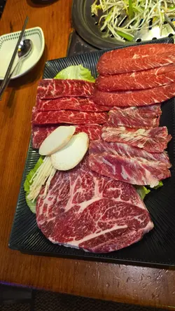 又是每月一餐的時候,Happy Friday去食韓燒,Book了20:00,4位。準時去到,唔知係味因為大雨,當日個場唔Full。餐廳面積較小,普遍韓燒格局,4人圍爐的位子坐得有點迫。餐牌。米酒,$100,將米酒倒入陶瓷米酒缸,滿滿的儀式感,感覺傳統。個拼盤付送 大醬湯,味道鹹鮮濃郁少許辣,材料十足。半半炸雞,$190,份量十足幾大件,有原味同甜辣醬味,口感香脆雞肉滑,甜辣醬更加惹味。肩胛牛肉,$240,頭一轉燒左陣就開始有專人燒,牛肉味濃又香口。牛舌,$170,牛舌大片,口感嫩軟有嚼勁,都幾正。豬肉拼盤,$450,有五花肉、護心肉、豬頸肉及醬醃薄切五花腩,都幾多款,五花肉及五花腩香口惹味,護心肉有嚼勁。專人燒。食物味道正常水準,但枱子太細擺唔晒碟肉要擺過隔離枱或木架,服務態度幾好,但因為唔夠人手要耐心等耐下。…查看更多
