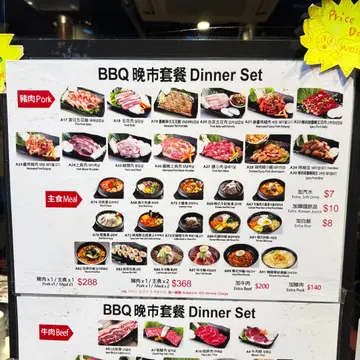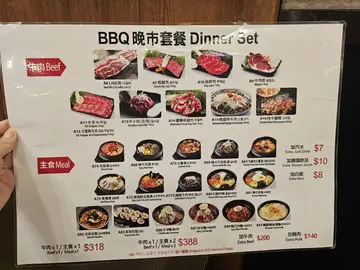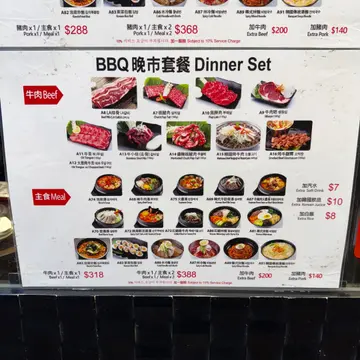 好耐冇食韩式烧烤,睇到哩间餐厅几抵食,咁试试。餐厅装修得好韩风,晚市都提供套餐,最平288可以有埋烤肉同主食,唔错。韩式前菜五款,一坐底就回送上五款韩式前菜,有辣白菜,凉拌菠菜等。其中酱腌鱿鱼爽口弹牙,辣白菜脆嫩得嚟唔会过咸,酸萝卜清甜爽脆,全部都好好味。可乐同芬达,汽水搭配韩餐简直一流,可乐气足冰爽,芬达橙香突出,食浓味烤肉时饮一啖,瞬间冲刷油腻感。LA排骨,分量都几大下,大大条排骨有3条。排骨用韩式辣酱腌制得超级入味,食落肉质弹牙又唔失嚼劲,啖啖肉香加咗少少甜辣风味,3件都唔够食。酱腌薄切五花腩,五花腩片得厚薄均匀,已经预先用酱腌制。食落油脂香浓但完全唔腻。搭配新鲜生菜食更是一绝,菜叶清爽脆嫩,包裹住热辣辣嘅五花腩,再加啲泡菜同酱汁,口感层次爆棚。辣牛肉汤,汤里配料十足,有豆腐、蔬菜,牛肉,鸡蛋等。汤底浓郁鲜辣,牛肉炖到极腍滑,一咬即化又保留肉香。成晚汤辣度温和唔呛喉,带丝丝甜味同发酵豆香,用来拌饭食绝对一流查看更多