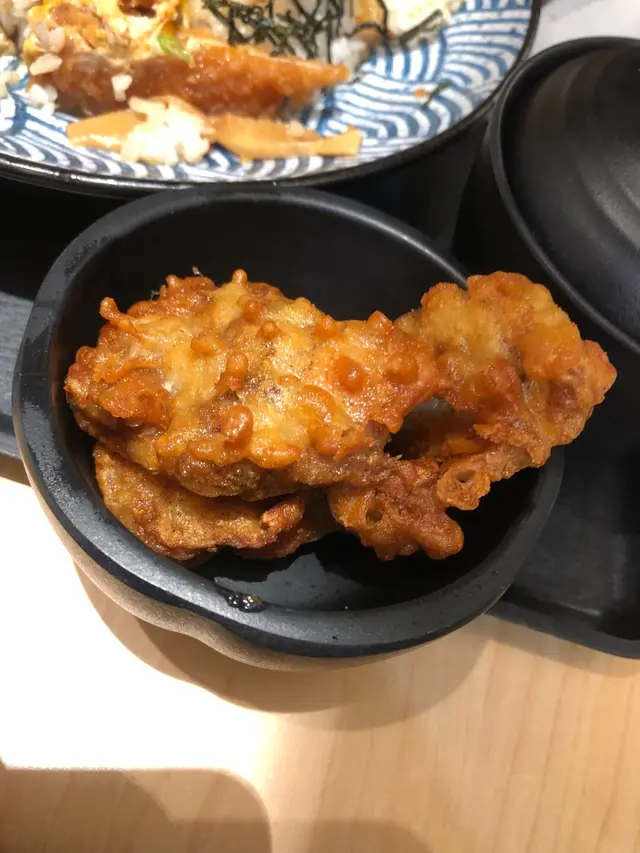 炸物雞塊,新鮮即時炸起,咬落口有啲似黑椒調味唔錯,還有配上的冷冷又酸酸的汁如果有碗放好似冇咁頹,用個碟好似啲碟頭飯咁兩個飯感覺一樣兩個飯上枱時間都好快,整體黎講覺得太多汁吧,而且食落啲飯唔算好熱,是暖暖的,應該是用碟,飯都比較快冷吧兩飯同樣要有都算多的配菜,食落覺得有啲太油脂感覺,好似菜撈咗大量麻油咁喇份量方面真的非常足夠,是飽肚之選。鰻魚都一樣吧,覺得是放大把汁,而家不只是一樣汁,我猜是餸都預先整好再配上吧,這個兩樣餸大是有兩樣汁查看更多