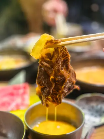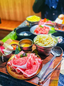 这天午餐时间来到登龙街,看到这间白色门面的博多水炊鸡和牛肠专门店,还有供应关西风的寿喜烧,套餐包括有前菜、饭面可以挑选饭/乌冬/拉面、蔬菜篮。前菜是泡菜,辣度不太辣,不吃辣的人都可以吃到,味道开胃。我们二人各点了一个各有130g牛肉的寿喜烧套餐,职员先向我们示范一次如何煮这个寿喜烧,有两支酱汁可以倒进锅里,一款是寿喜烧汁,另一款是昆布清汤。.寿喜烧汁是甜甜的豉油味,如果想沟淡味道就可以倒另一支昆布清汤,这里的寿喜烧是一人一锅的,可以调到最贴近自己喜欢的口味唷~🥩两款肉的肉质都很高质素啊!可以清楚看到肉的纹理脂肪分布。如果喜欢吃香浓一点的牛肉油脂味道可以选♡和牛霜降肉$188。而相比之下♡和牛肉眼$228肉质就软腍滑溜一点,两种都各有风味,好吃!大家记得把牛肉沾上蛋液再吃,牛肉肉质更加香滑,并且吃起来起充满蛋香!.除了牛之外,餐厅也有提供猪,是来自北海道的♡北海道米豚肩$35 50g,肉质同样不错!肉味浓郁~.🍜乌冬和拉面味道都很好吃!乌冬口感弹牙,而拉面质感是偏粗身有咬口的。🥗蔬菜篮有冬菇、金菇、娃娃菜、豆腐等。🥤饮品点了白桃提子梳打和乌龙茶。