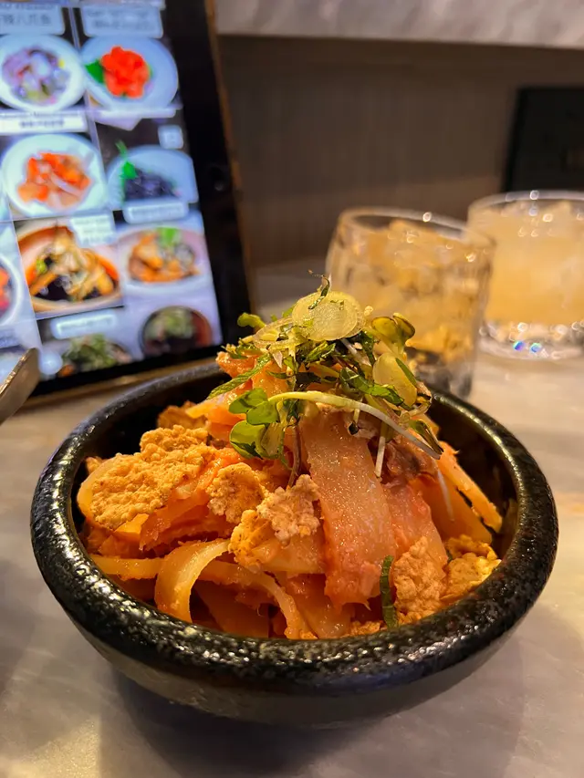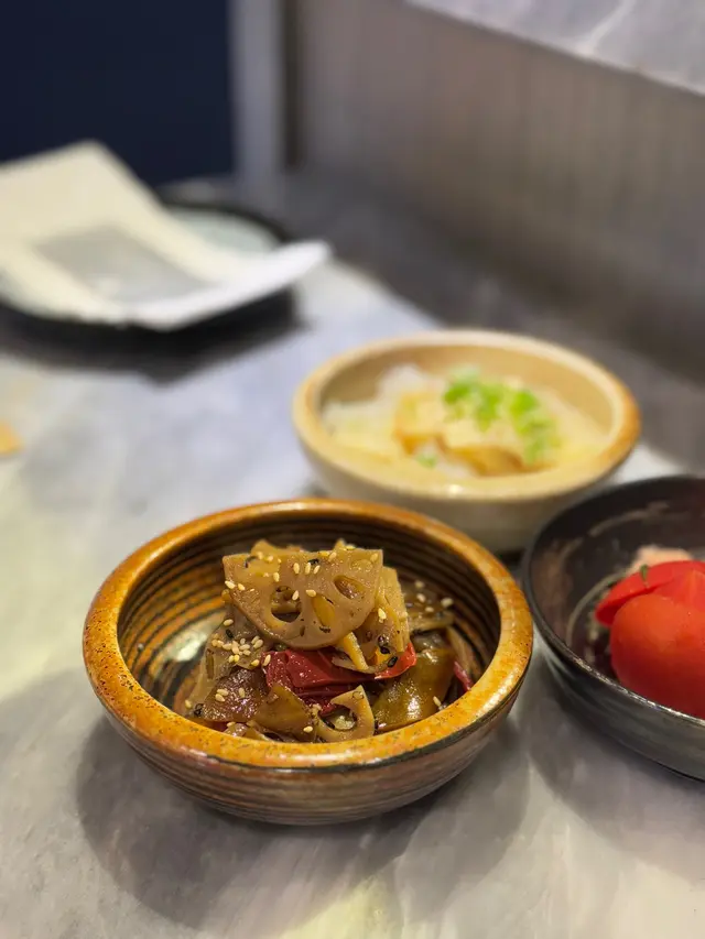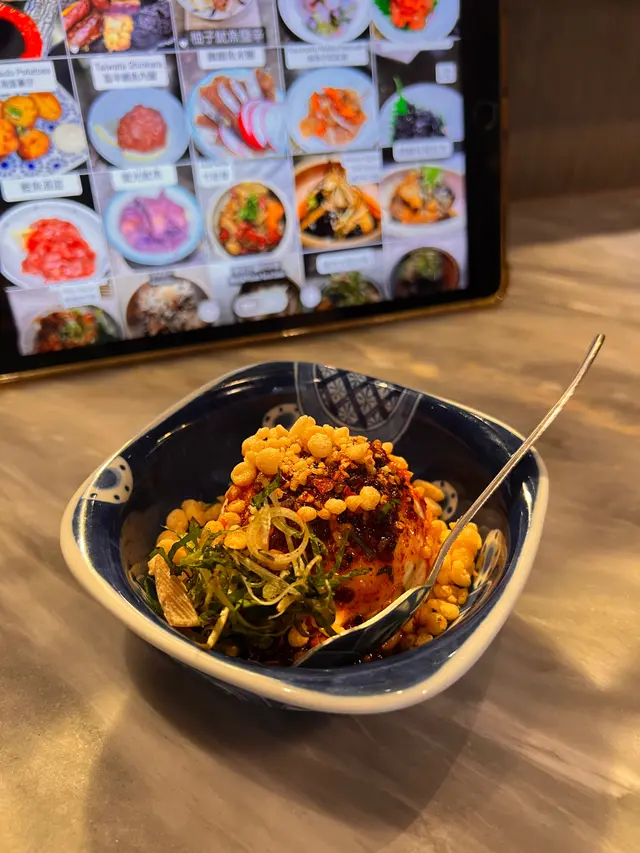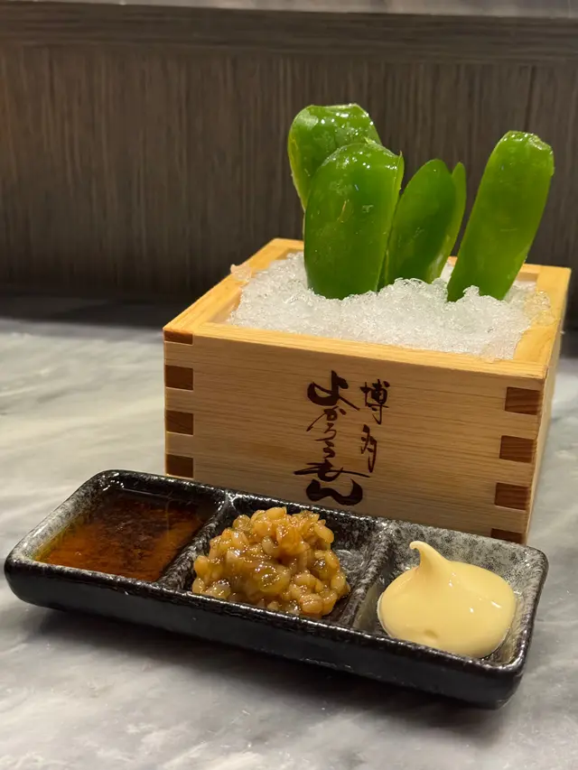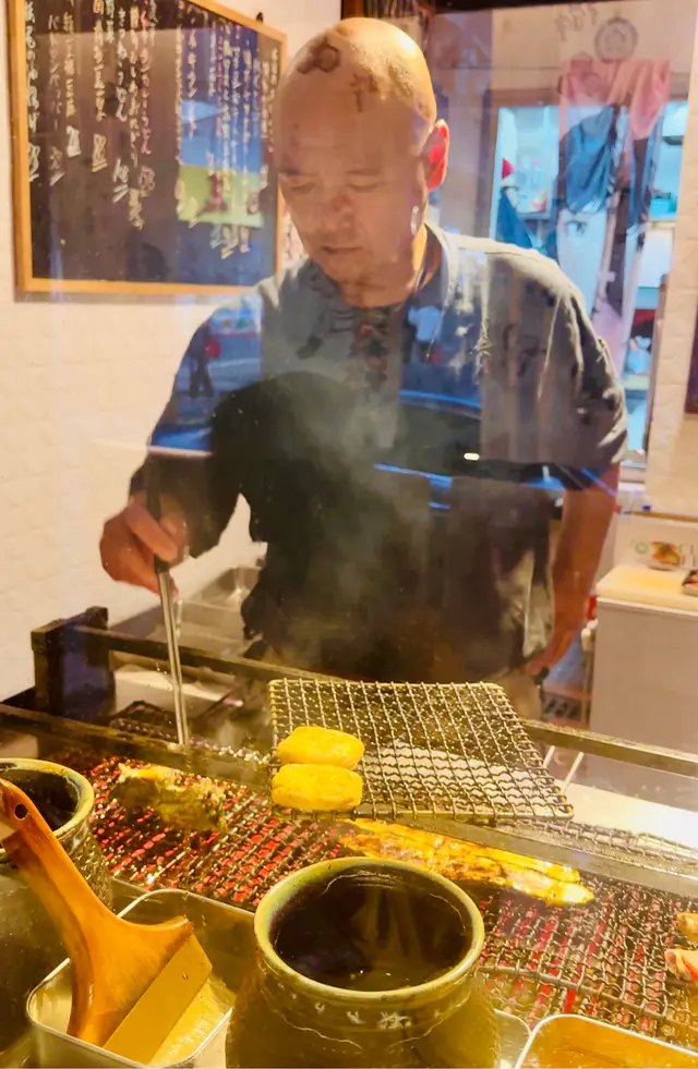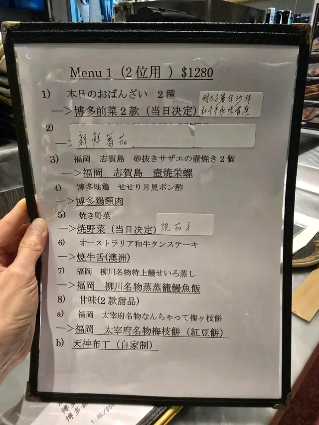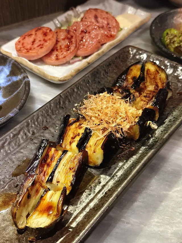 無意中搵到,就試吓,不過位置有啲腳程。店舖唔算大,我哋兩個坐吧枱睇住師傅燒燒燒,店員話師傅係九州人,可能係佢認為要保持品質,未滿師唔可以燒嘢食,所以全程都係師傅一個燒晒,其他人只係幫頭幫尾,而且無乜笑容,比較cool。燒豆腐,豬腩肉椰菜(呢兩個無影相),燒牛脷(好味),燒和牛扒(覺得無牛脷咁正),燒茄子,万能葱卷好香,燒鯖魚干(都正,肉比較實),燒唐辛子(辣,不過後勁唔夠),最後甜品,布甸,店員話係師傅自己整嘅,相片呢個係4人份量,不過都係食晒,無剩,正,埋單,呢個價錢覺得貴咗啲,如果話值唔值得,我認為可以一試嘅,始終味道幾好,服務亦幾好,有機會會唔會再嚟?會!