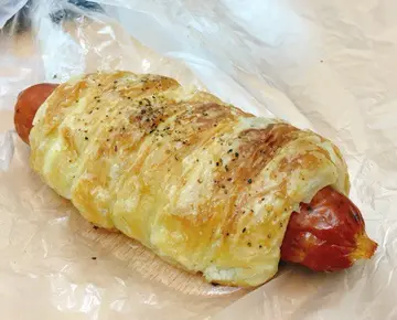 话说唔够时间买早餐, 请同事帮我买咗个香肠包...一见到就觉得好似好好味...点之食咗一啖...好脆....牛角包嘅质感, 又软又脆..配合埋入面浓郁而结实嘅香肠做出了非常高层次嘅口感对比