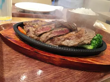 安格斯牛排铁板餐, 铁板很热, 绝对保持到牛扒的热度, 所以必须尽快食用, 要不牛肉便太熟了