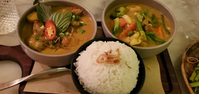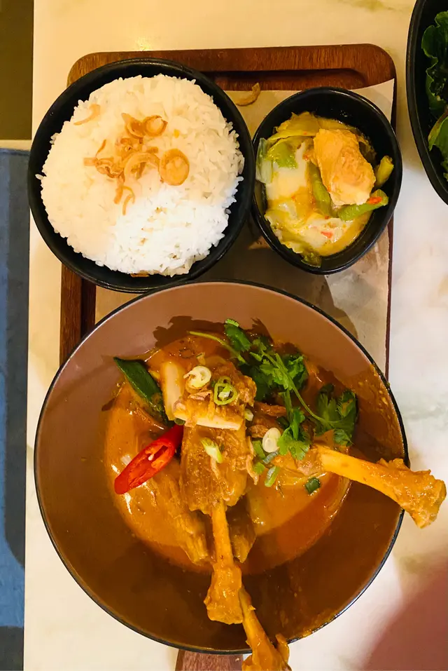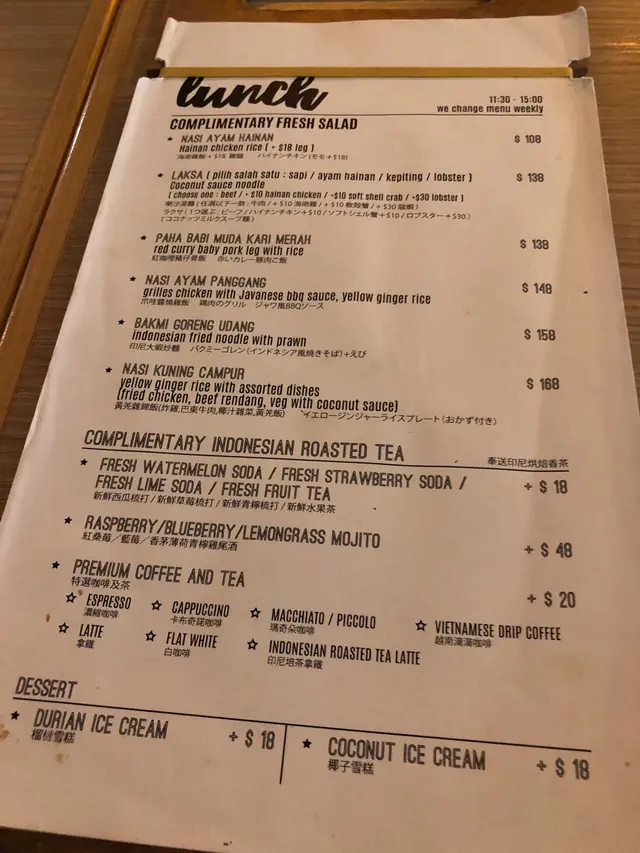踏進這家餐廳,眼前一片熱鬧非凡。桌上的菜色彩斑斕,勁惹人垂涎。先點了道海南雞飯,雞肉夠滑嘅口感真係撚正!🍚 飯粒飽滿又香,醬汁嘅香辣味撲鼻而來,好夠kick。喇沙軟殼蟹湯麵嘅湯底味道濃郁,不過湯就欠啲平衡,蟹肉少咗啲,麵身太腍底咗。爪哇醬燒雞件件肉質嫩滑,醬汁濃郁得黎又唔會過於油膩,喉響無比!😋🍗餐廳又提供嗰啲爽口前菜沙律,清新提味,為主餚做咗好好嘅鋪墊。啖啖肉嘅沙嗲串燒香氣四溢,碳香味同甜辣沙嗲醬嘅組合簡直絕配。至於嗰碟薯仔牛肉餅,外層香脆,一啖咬落去,牛肉嘅鮮味喺口腔裡面綻放,真係心思思唔想停手。🥔總結,呢間餐廳嘅食物都算係地道,色香味具全,雖然某啲湯面略嫌平平,但整體仍然係一個可以滿足我南洋食慾嘅好地方。下次再約埋朋友一齊嚟,趁著傾偈嘅空檔,再享受下這濃厚嘅印尼香料風味。👌…查看更多