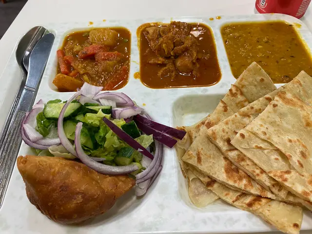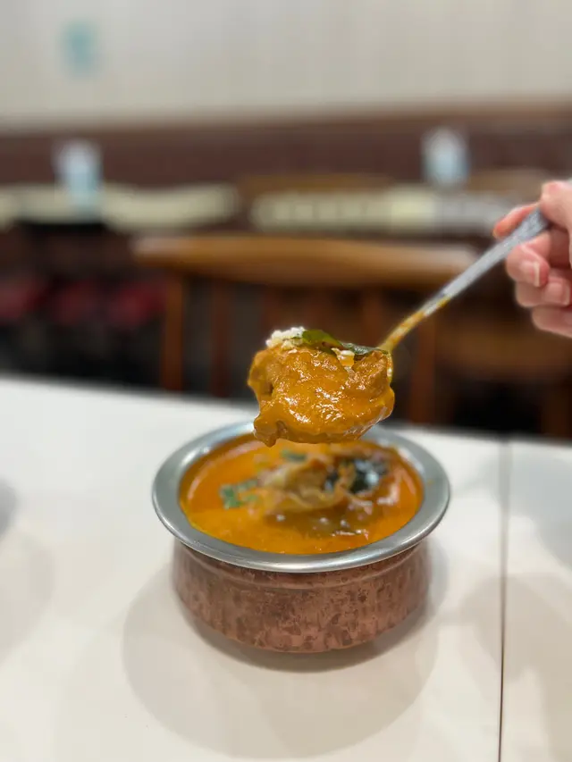寒流下熱辣辣印度風味獨特$80炸芝士球咖哩(唔辣)伴青瓜沙律小碟+$22印度油酥餅大塊+$20熱印度奶茶,共$122高級餐廳廚藝水準,可裏面日久失色懷舊裝修,外面又被帳篷棚架圍住,但價格相宜,可惜未夠2:30己落半閘準備3時中場關門体息!!,唔理有無客人在場?!,無咩服務但也無收我服務費.本來我係去開另一間餐店,點知搭錯車就嚟到😂來都來了就來吃吧😆呢排多節日多吃肉有點滞就點了無肉又獨特$80炸芝士球咖哩(唔辣)伴青瓜紫洋蔥生菜(冇蕃茄)😂沙律小碟+油酥餅稍等一會就有賣相不錯咖哩滿滿潤澤黃金色,點點腰果碎鋪面,最🤩吸晴2大粒炸芝士球橄欖形半浮沉係咖哩裏.緊係先試炸芝士球咁特別都無係其他店舖見過?熱辣辣又軟綿入口即溶,把我也溶化了.再把大大塊油酥餅一開二沾上熱辣辣咖哩醬汁非常幼滑,呢款隠若有點腰果香甜味,唔辣的.口感特別,I like it🤩隨送上的沙律小碟份量比一般多啲就係(冇蕃茄)也清新爽脆可加傳統印度三色沙律醬,有黑,青,依點解冇橙色辣醬?趕收工中場体息?但印度奶茶就較普通,並不覺得加入很多印度香料🤔?只比普通奶茶茶味好啲?!單就廚藝以言拍得住中高檔大餐廳,(餐牌上正價菜式)但價格相宜,可是睇番之前食評關於特價午餐好壞參半,但較便宜.相信同經濟下滑,又加上大廈外出帳篷棚架遮蓋了餐店幾乎淹沒入口?!😂隨非熟客光顧,很難吸到新客相信打擊生意.…查看更多