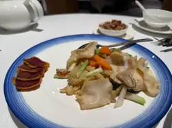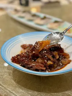 This traditional Cantonese restaurant is located at Lockhart Road in Causeway Bay, and frankly while I have passed by many times in the past, I have no idea what they offer and only until recently when their chef went on the TV show, I got to know more about Hau Tak Restaurant. Today, we came here to enjoy Chef Lau’s famous dishes, honed from his 17-year experience at the famous Kowloon Fook Lam Moon.The restaurant has multiple floors, and on the ground floor it is mostly for smaller groups. We get a table at a corner, with good space and privacy. The décor is neat, brightly lit and uses plenty of wood on the walls to create a warm and comfortable setting. We are served by restaurant manager Johnny Fung, who also came from Wanchai Fook Lam Moon. He shared with us the history of how this restaurant came about.To start, we have Appetizing Clams 醒胃冻花甲 ($248). The clams are meaty and without any sand, cooked perfectly and does not have any rubbery texture. The magic is on the sauce though, which is made from green chili, bird’s eye chili, rattan pepper, and lemon juice, having an amazing taste with hints of spiciness but not excessive, and able to bring forth the umami of the clams to another level. Fantastic.Next, we have the pre-ordered Stuffed Pigeon with Shark’s Fin 仙鹤神针 ($1,080). A traditional dish that has now virtually become ‘extinct’ in local restaurants, The chef has meticulously removed the bones of the pigeon and then stuffed with shark’s fin, before braising it to great tenderness. Together with an abalone sauce that is so rich in umami and flavours, the pigeon is good to share for two people and is a must try.We also have a small portion of Honey-Glazed BBQ Pork 蜜饯叉烧皇 ($140). With four pieces, it is just right for two people, with the char-siu nicely glazed, having some scorches on the surface, while the meat is very tender and juicy. The marinade used is also slightly different than other restaurants, having a richer fragrance. Very nice.Knowing that we are foodies, Johnny has recommended us to also try Stir-fried Snowflake Chicken with Ham 烧云腿拌雪花鸡片 ($980). Using conch of smaller size, they can offer this at a more friendly price. The chef thinly sliced the conch and cooked just right to retain the perfect texture, and likewise the chicken are also sliced equally thin, very tender and delicious. The Chinese ham on the side offers a nice savoury note, with the scallions and vegetables adding visual appeal and flavours. Another fantastic dish.Feeling we still got a bit of room, we asked Johnny for recommendation. He suggested us to try the Crab Meat Yi-Noodle 怀旧蟹肉伊面 ($168). The staff helped us to split into two portions, with the noodle nicely done, great in texture and not soggy. The soup is also very good, rich in flavours and umami, without MSG. With the delicate crab meat, bean sprouts and garlic chives to add to texture and fragrance, another fantastic traditional delicacy.Johnny has kindly offered some complimentary desserts for us, starting with Aged Mandarin Peel Red Bean Soup 陈皮红豆沙. Not too sweet, there are plenty of beans which provide the substance to the dessert, with the fragrant mandarin peel very appealing. We also like the inclusion of lotus seeds which give another layer of texture.The other dessert is Red Bean Paste Silver Leaf Wrap 豆沙银叶角. Wrapped inside the Chinese chestnut leaves is a soft and munchy rice dough with nice red bean paste inside. It was the first time we have heard and tried this, and Johnny shared that there is only a few restaurants that are still offering it, not because it is particularly difficult to make, but because it cannot fetch a good price. It is a pity as they are so delicious.Service is very good, with Johnny very attentive and came to our tables repeatedly to check in, also sharing his stories of his interactions with the many celebrities and tycoons who were regular patrons. We can all feel his passion. The bill on the night is $2,977 and very reasonable. I look forward to returning, to also trying out their dim sum next time. A great place to experience the nostalgic Cantonese dishes.…查看更多