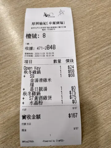 【屯门抵食手撕鸡专门店🐔厚兴瑜记手撕鸡】-平时耐唔耐都会系厚兴瑜记买啲手撕鸡加𩠌🤩估唔到而家竟然喺屯门开咗堂食店🙂↕️二人晚餐$168有半只鸡、两款小食😛有汤、有菜有饭🍚好抵食!有时想偷懒煮少餐可以黎呢到开餐🍴-😋皇牌鸡套餐$168有四款鸡可以拣😝小编就嗌咗「花雕醉鸡」😳鸡皮Q弹😋花雕酒渗透落鸡肉,可以话系齿颊留香!意外惊喜系入面有鸡肾🤪食落好爽口😎小食小编就拣咗「麻辣猪肚」同埋「海蜇🪼」份量超多!猪肚麻中带辣🔥几惹味送饭一流~餐厅都几细心套餐除咗有肉仲有菜😍系上汤娃娃菜😋😋最后再饮返碗足料老火靓汤😆劲有住家饭嘅感觉~-😋水晶柚子蜜同水晶阿华田🥤$10樽见佢嘅饮品几得意🤣用个肥嘟嘟嘅胶樽装住🤪所以嗌咗两杯嚟试😉有惊喜!柚子蜜入边有啲奇亚籽啫喱口感好正!另一樽就系鲜奶,再加埋阿华田冻😍两款都好饮❤️🔥-📍厚兴瑜记手撕鸡 屯门:石排头径1号卓尔广场2楼202C号舖💸人均消费:$90…查看更多