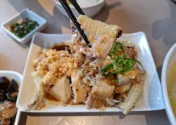 相隔很久没有来屯门了,在屯门市广场内的Food Maze有我喜欢的手撕鸡专门店 - 厚兴瑜记手撕鸡,这是全港第一间手撕鸡堂食店,之前在其他分店试过外卖,现在可以堂食真的很方便,还有join了会员就有更多coupon优惠,$20就食到个下午茶。 餐牌上除了手撕鸡、香葱霸王鸡、金银蒜香鸡、花雕醉鸡、秘制香辣鸡,还有新品 [麻椒手撕鸡],这新品的特色在于是于温氏食品的明星厨师张锦祥推出的大师麻椒手撕鸡。有四款皇牌鸡饭套餐选择,我们选了皇牌鸡二人套餐 $168,套餐包括有皇牌鸡半只、双拼小食、上汤娃娃菜、住家靓汤、丝苗白饭,白饭可转米粉/汤面/水晶粉,转稻庭乌冬 +$10,种类丰富,价钱亲民。 皇牌鸡二人套餐 - 金银蒜香皇牌鸡 (半只) 皇牌鸡的面层铺了满满炸蒜茸及香葱,脆脆的好香口,鸡都好大碟,份量十足,鸡肉鲜嫩,味道浓郁,软滑有少少嚼口,酱油调味恰度好处,不会过咸,拌饭一流,配合幼滑米粉,上汤清甜,米粉吸到汤汁,越吃越滋味。 小食双拼两款小食我们选择小冬菇和鸡肾,鸡肾好入味,口感好爽,小冬菇炆至软绵,酱汁带咸香微辣味,两款凉拌开胃小吃真不错。 上汤娃娃菜汤底非常清甜可口,鱼腐口感软绵,娃娃菜翠绿鲜爽,整碗很快给我们饮完。住家靓汤 这天的住家汤是章鱼莲藕红萝卜猪骨汤,十分足料,汤味鲜甜滋润,猪骨煲到溶化,肉味香浓,莲藕爽口,有住家汤的味道。…查看更多