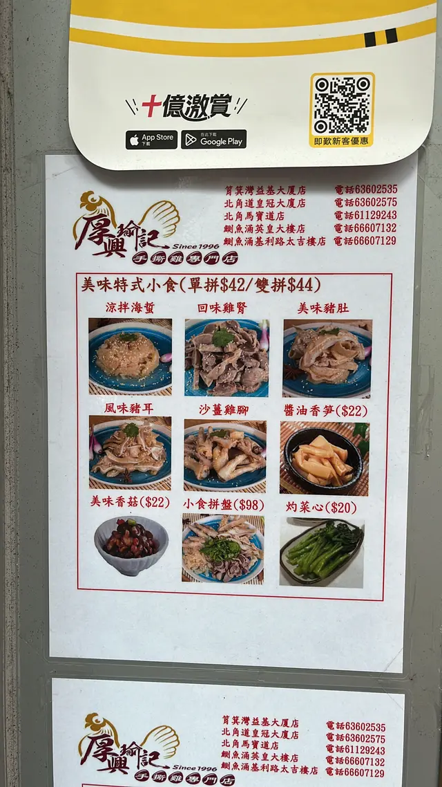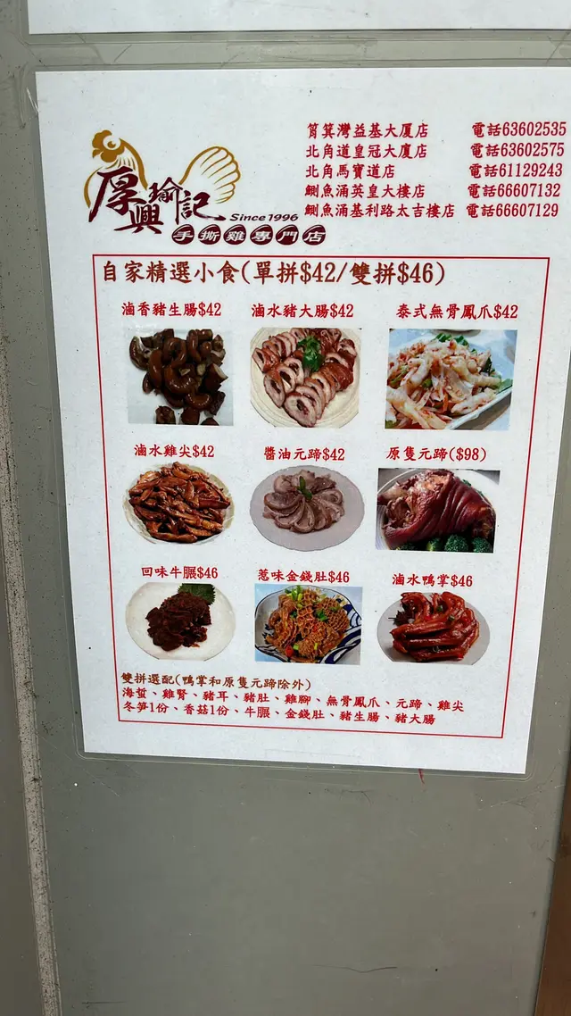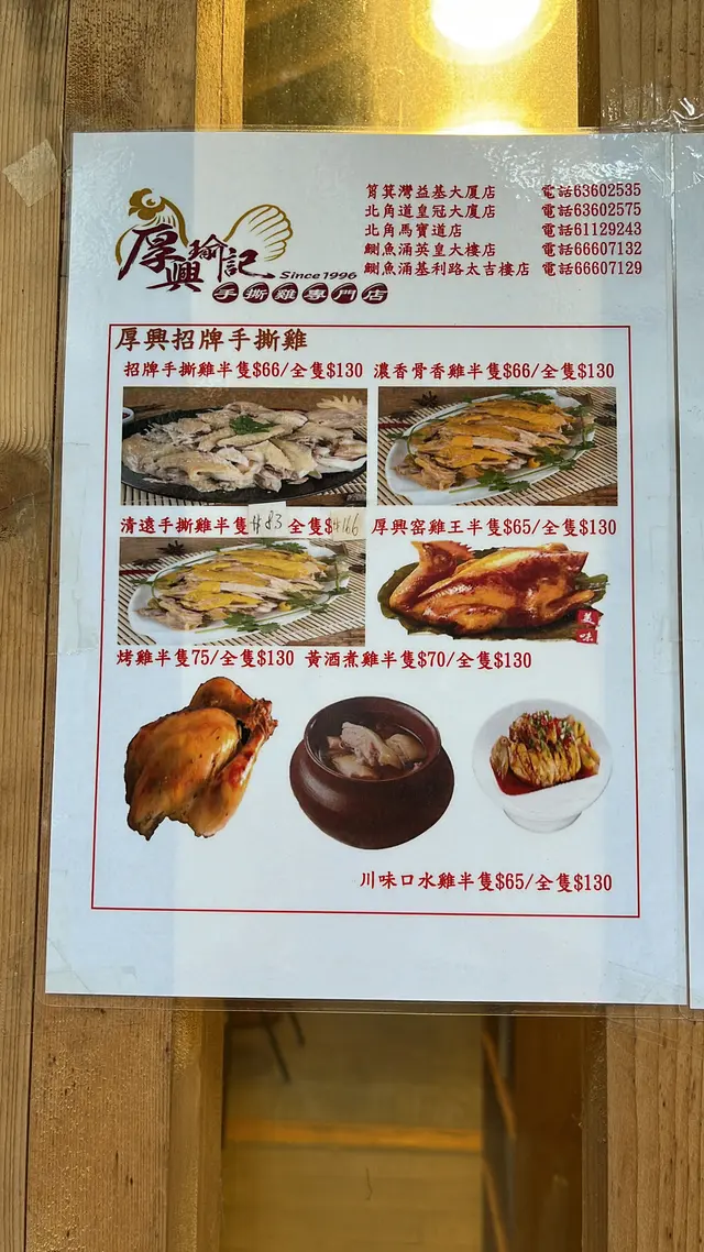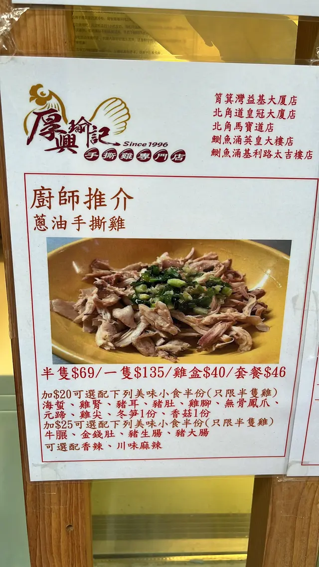 厚興瑜記手撕雞 (太吉樓) (鲗鱼涌) 网址: https://s.openrice.com/QrLS0tzu600 地址: 香港鰂魚涌基利道7號太吉樓地下3A號舖 电话: +852 66607129