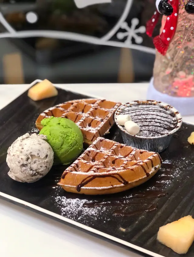 Molten lava cake with waffles