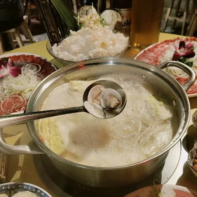 年纪相约既人约食饭,拣左个好地方。虽然地方唔大,但设计用心,霓虹灯,仲有枱枱凳凳,同埋其他配置都喺怀旧港式风味。晚上一班人热热闹闹,播埋旧歌,气氛十足。而家仲有限时$1枝啤酒,10枝起计,劲抵饮。港式打边炉有咩食,相信唔使我多介绍,海鲜、猪牛羊同埋丸饺做胆,仲有椒盐乜乜都可以食到。咁热闹嘅环境,店员招呼都好殷勤,主动加汤,又会收走碗碟。咯咯鸡花胶汤金黄色嘅花胶鸡汤真材实料,鸡同花胶一大碟比你。鸡本身已经有8成熟,口感鲜嫩,加埋花胶落汤度,成个汤底原汁原味,真系先饮为敬。牛魔王拼盘 本地手切肥牛、安格斯牛颈脊、牛脷托、封门柳、牛肉粒、黑安格斯牛板腱,用冰坐住成盘上,够晒豪华。各款牛肉既质素平均地高,相信牛魔王都冇投诉。紫菜炸响铃如果平时打边炉要食响铃真系要试试,响铃大大个,里面卷住紫菜,即叫即炸,轻轻一灼,紫菜香味,尤其突出,享受丰富层次。苏格兰蛏子 南非鲍鱼 鲍鱼同蛏子同样爽口,来货新鲜。西班牙黑毛猪 肥瘦相间,令瘦肉甘香而不硬,令人回味。招牌芫茜饺一咬开系饱满既芫茜馅,芫茜香味直扑入鼻,绝对适合芫茜关注组人士。Q弹鲜虾丸并Q弹墨鱼丸 Q弹冇呃人,加埋蟹籽卖相更吸引。冰豆腐吸汤之选。椒盐鸡软骨大排档版本既椒盐鸡软骨,港式风味,香口惹味,𩠌酒一流。…查看更多