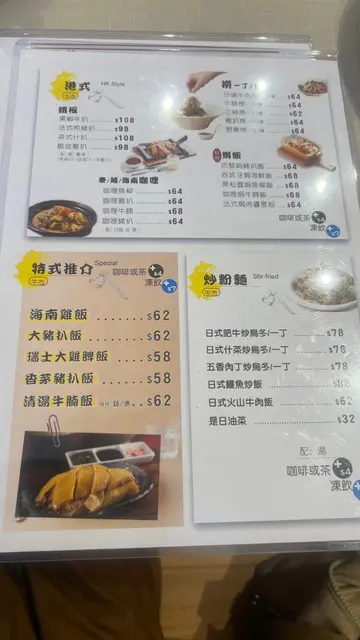 汤同茶都可无限添饮汤有罗宋汤同面豉汤茶有麦茶亦可加钱配其他饮品,热饮 +$4,冻饮 +$7- 山椒味噌猪骨汤肥牛拉面 $55微辣有芝士加入汤面中,味道搭配- 巴黎焗猪扒饭 $55猪扒口感唔错虽然系焗饭,但唔算等得耐…查看更多