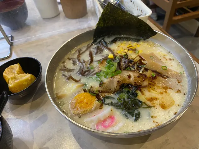 新蒲崗新科技廣場樓下有間又一間餐廳午餐便當都有好多選擇當中有沙律、日式便當同埋拉麵順帶一提就係佢可以無限refill 麵豉湯或者羅宋湯。其實係有個自助bar 自取的今次試了叉燒黑蒜拉麵,坦白講!質素一般,賣相同味道都唔算太出色。佢今日配送嘅小食係炸燒賣,um.. 雖然有啲奇怪但不過不失啦。拉麵既賣相不算好好,不過都材料豐富嘅。相對其他客人嘅日式便當,相信日式便當嘅賣相會比拉麵更加吸引至少日式便當起碼有沙律同埋蒸蛋作為會送小食。 下次有機會會試埋日式便當查看更多