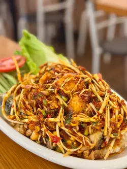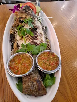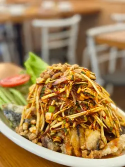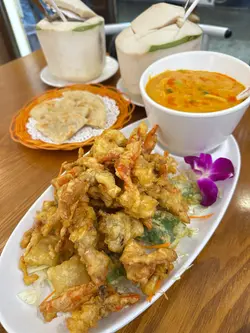 同朋友一齐嚟咗呢间喺九龙城嘅泰国菜🇹🇭餐厅食晚餐🤣$78「猪肉肉碎生菜包」:猪肉肉碎有肥有瘦整体嚟讲脂肪含量充足所以好甘香,仲似乎加咗啲蒜蓉、青柠汁、香料等等,味道咸咸哋酸酸哋,用超级新鲜爽脆嘅生菜包住嚟食,非常开胃🤣$88「咸鱼炒椰菜苗」:问泰国姐姐可否走咸鱼祇用蒜蓉炒,佢话冇问题👍,椰菜苗新鲜爽脆,蒜蓉炒简单好味道🤣$42「椰青」:清甜,仲有啲椰子肉可以食🤣$84「沙嗲猪鸡」:有3串猪肉3串鸡肉,烧得香口,仲可以沾甜甜哋嘅沙嗲酱一齐食🤣$148「盐烧乌头」:乌头鱼新鲜肉质鲜美,仲非常厚肉😋,估计喺鱼皮上边搽咗啲盐上去先嚟烧,咁样应该比较锁住鱼汁;仲加咗好多香茅同埋南姜喺鱼肚里边,咁样味道又清新啲啲🤩…Read More