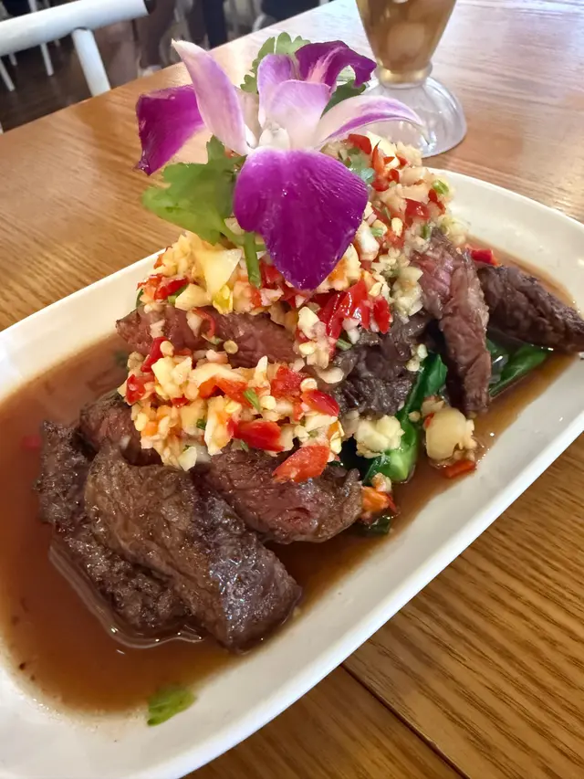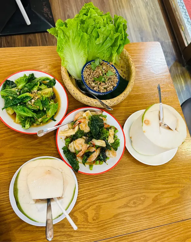 友誼泰國菜館 (九龍城)九龍城城南道5號地舖唔知點解阿仔情有獨鍾,好鍾意食泰國菜,所以今日又試九龍城呢一間,樣樣都好味道😬~豬肉碎生菜包 $78豬肉碎味道香口,配生菜啱啱好,有清新感,食落好開胃又唔會膩🥬😋 ~鹹魚炒椰菜苗 $88椰菜苗夠爽脆,鹹魚味濃郁帶啲鹹香,好惹味,食到停唔到口🥢🔥 ~檸檬燒牛肉 $158牛肉嫩滑帶檸檬香,酸酸地好refresh,鹹酸交織超開胃🍋🥩 ~香葉炒海鮮 $88蝦同魷魚好新鮮,蝦肉特別彈牙,味道鹹香,真係忍唔住食到差唔多要吮手指🍤~椰青原個椰青一啖飲落去超清爽啊💦!椰青水清甜到爆,仲有陣陣天然花香🌴,冰凍飲真係透心涼,飲完成個人即刻降溫❄️👍整體嚟講,呢度菜式款式多,食物美味,性價比高,兼且職員服務有禮,值得推薦,一於下次再嚟試其他美食!…查看更多