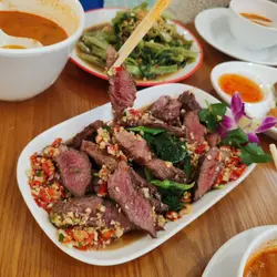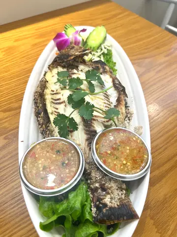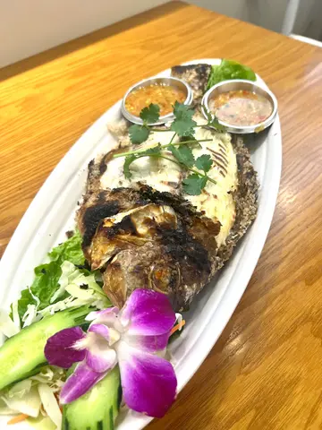 这间泰菜刚刚搬迁到这里是吃过一次,对此念念不忘,今晚便专程来到这里。题外话:今晚刚刚坐低点了菜之后,听到有个客人在门外如获至宝地对店店员说,早知你的食肆搬到这里,就不用吃之前那间难食的泰菜了。 可想而知顾客的眼睛是雪亮的。👍👍👍👍👍鱼露生虾$98,生虾爽口弹牙,吃得出是新鲜货色,加点泰式酸辣汁,好味又惹味。👍👍👍👍👍烧鲫鱼$148,泰式烧鲫鱼,以粗盐包裹着鱼生,再以泰式香料放在鱼肚内,增加味道层次,鱼肉鲜甜,如果烧的时间短一点更好。烧鸡半只$98,这里的泰式烧烧鸡以半只计算,就不用担心两个人吃不完。这个泰式烧鸡。泰式烧鸡炭火味道香浓,鸡肉鲜嫩,加点泰式烧汁味道层次更加丰富,如果鸡肉的水份再多一点更好。柚子沙律$88,柚子份量十足,酸甜适中,加上泰式香料和花生碎,味道像曼谷吃到的一样。椰青$42,椰青水味道清甜,是吃泰式食品必选的一道饮品。可乐$15…查看更多