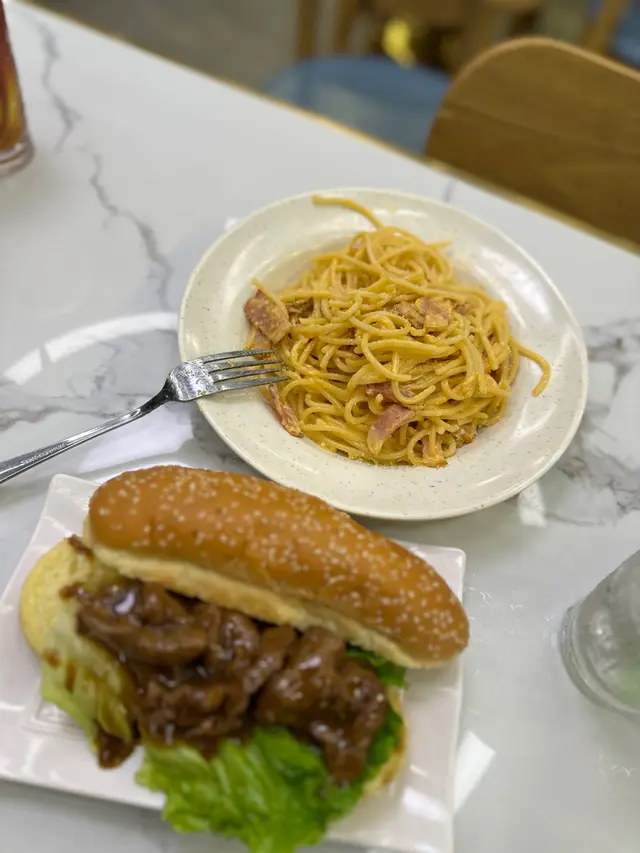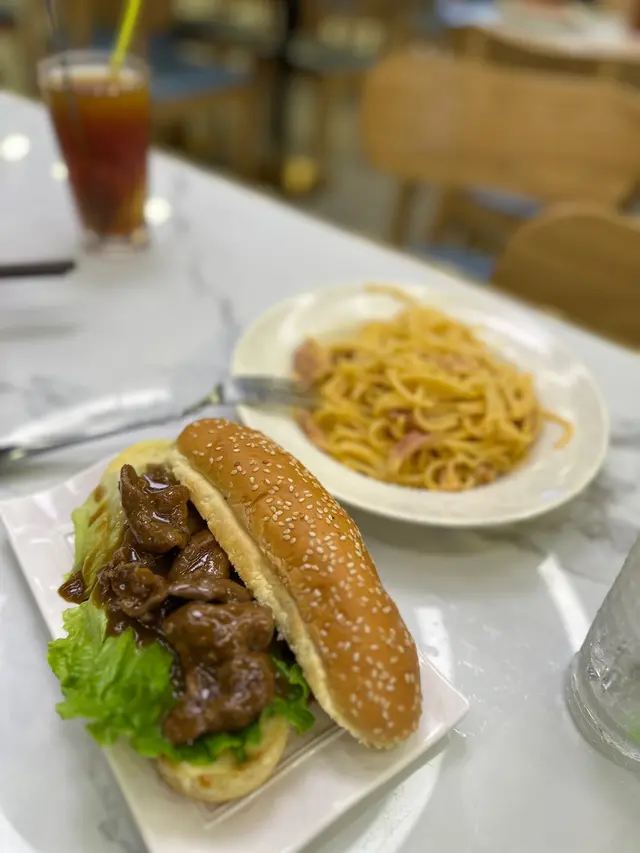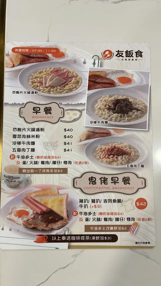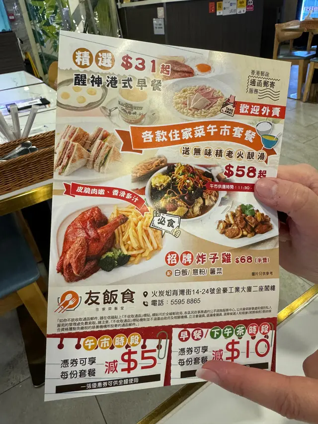 今日經過火炭區做嘢,感恩順利地提早做晒啲嘢,一於食個獎勵吓自己😆行過見到呢一間 「友飯食」 寫住下午茶都有做折扣,咁就想去幫襯吓先! 第一次嚟到,見到個環境都好大好企理好舒服,唔似一般茶記咁,第一印象已經好好👍我哋兩個人叫咗兩份茶餐,吉列豬扒拼沙律,西多士跟凍檸茶。 好大份喎! 🌟吉列豬扒拼雜果沙律個吉列豬扒好大份,炸得好脆,完全唔會太厚粉,沙津係我兒時最鍾意食嗰啲雜果沙律,滿滿嘅回憶出晒嚟,豬扒配埋沙律醬,完美滿分嘅配搭👍🌟西多士跟凍檸茶呢個係香港人解壓3點3,必備嘅item。 個西多士好大份,大過我手掌,上面配埋一嚿牛油再加埋糖漿,正! 你再配埋凍檸茶,好香檸檬味😆整體嚟講呢間餐廳嘅質素都唔錯,全部都好正常發揮,最有驚喜嘅係份量好大,價錢又有折扣! 抵食👍…查看更多