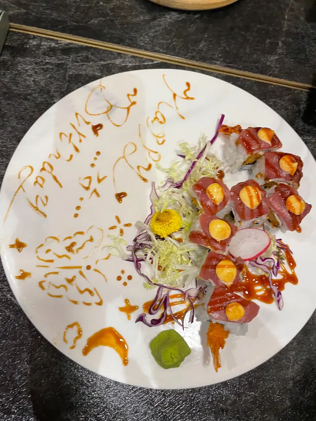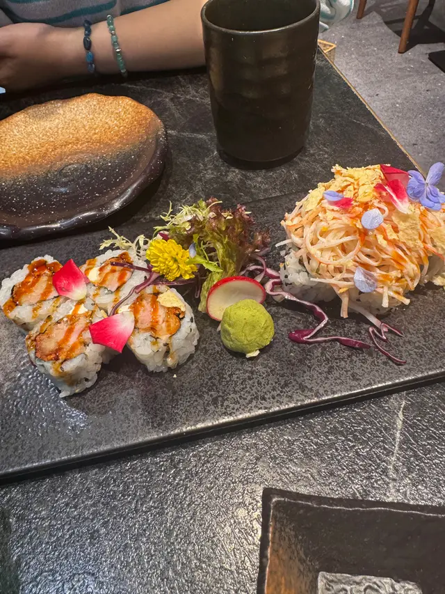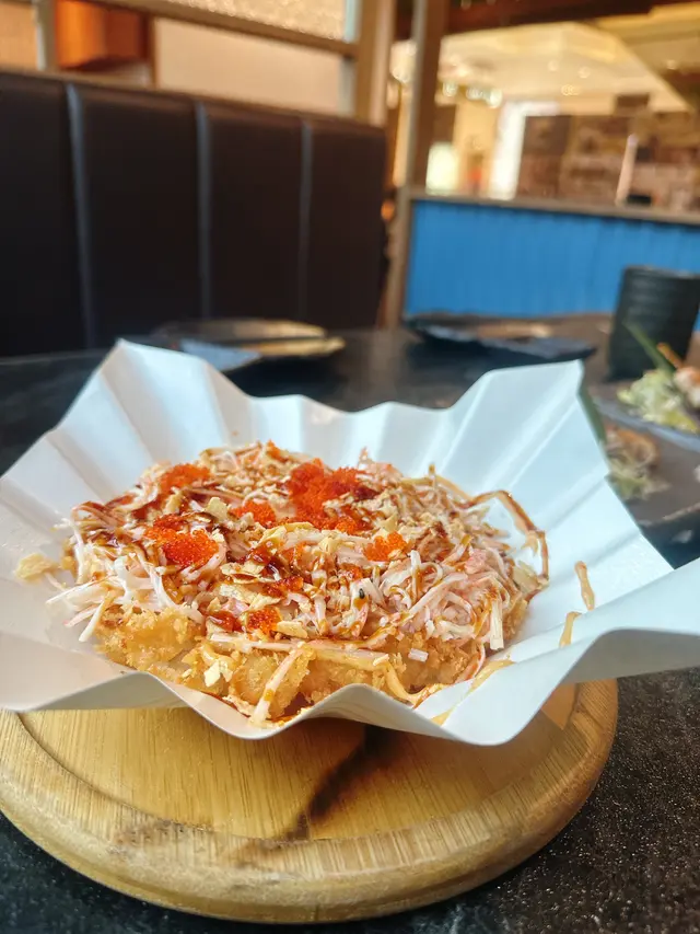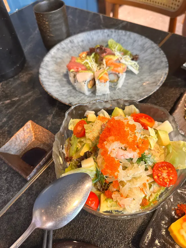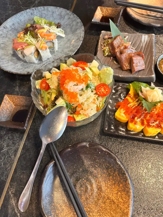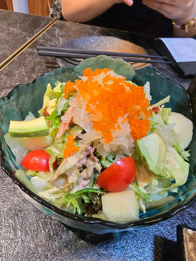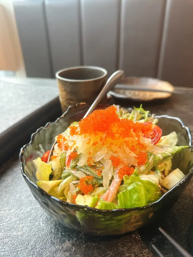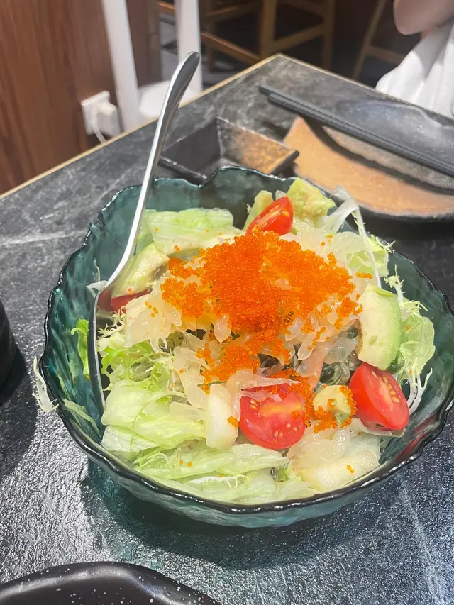約左成個月終於見面~去左the one食日本野首先叫左個沙律~柚想蝦你沙律 $58個名好cute~沙律菜新鮮爽脆,仲有車厘茄、海草、蘋果、柚子、蟹籽、牛油果、甜蝦、柚子汁成個感覺都好Fresh,牛油果好creamy,係一個好稱職既開胃菜壽司:🕷蜘蛛 $103主角係炸軟殼蟹、青瓜、牛油果、蟹柳之前係旺角分店食過,今次Encore,份量十足,一樣咁好食🗻富士山 $98蟹籽、蟹柳、鰻魚、牛油果、脆片海量既蟹柳就好似富士山個頂咁食落好有層次,爽脆軟糯口感二合為一串燒:👅埼玉網燒牛舌 $78牛舌好厚,口感彈牙,十分juicy,蘸埋醬汁好惹味鹽燒白鰻 $38火喉剛剛好,皮脆肉嫰,鹽燒更突出白鰻既甜🐽鹿兒島黑豚荔枝卷 $32薄薄的黑豚肉包住香甜多汁既荔枝~正呀🐽黑豚豬頸肉 $32豬頸肉有一定厚度,彈牙爽脆,唔錯呢間卡位比旺角&荃灣分店多,同埋都幾多人~…查看更多