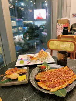 最近去了荃湾荃新天地一楼的古今二享用晚餐。古今二是一间日式餐厅,主打创意卷物,饱览商场中庭露天广场,供应沙律、前菜小食、饭面、串烧、锅物、烧物、天妇罗及炸物、寿司、刺身、卷物等等。餐厅座位阔落,特大厨窗,透光度高,用餐舒适。古今日式煎饺$56外皮煎得金黄酥脆,猪肉内馅鲜嫩多汁。日式麻酱豆腐沙律$48豆腐滑嫩细腻,搭配浓郁芝麻酱,捞埋清爽的沙律菜,味道清新开胃。蜘蛛 $88卷物饭粒握得紧密,软硬适中,夹起来不易散开,紧紧卷著青瓜、蟹柳、牛油果和炸软壳蟹的丰满馅料,一口就有多重层次。寿司薄饼$98炸饭饼变成薄饼饼底,饭饼外层金黄酥脆,内里米饭香软弹牙,面层的辣味三文鱼和千岛海鲜酱和炸饭饼底完美融合,啖啖卜卜脆,口感丰富惹味。蒜香牛油粟米$38香甜粟米配上香气四溢的蒜香牛油,入口香滑带有淡淡蒜香,食欲大开。黑豚猪颈肉串烧$28黑豚猪颈肉烤得外焦内嫩,肉质鲜美多汁,烟熏香气扑鼻,简单调味凸显猪肉本身的甜美与丰富油脂感。盐烧鸡中翼串$28用上粗盐烧过的鸡中翼,有一种焦香,鸡肉充满肉汁,非常嫩滑。…查看更多