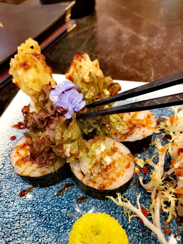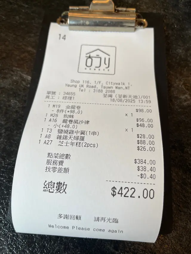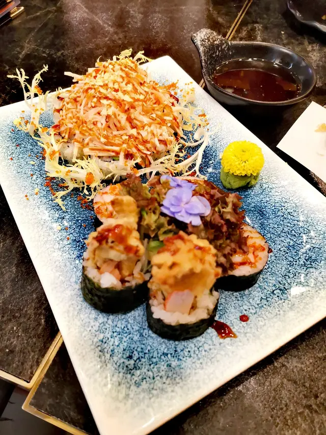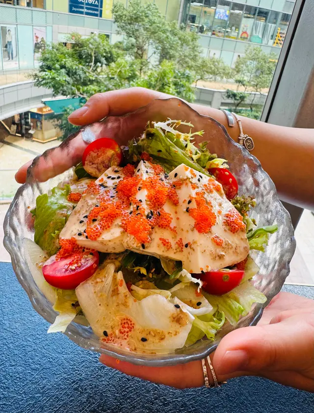 最近去了荃灣荃新天地一樓的古今二享用晚餐。古今二是一間日式餐廳,主打創意卷物,飽覽商場中庭露天廣場,供應沙律、前菜小食、飯麵、串燒、鍋物、燒物、天婦羅及炸物、壽司、刺身、卷物等等。餐廳座位闊落,特大廚窗,透光度高,用餐舒適。古今日式煎餃$56外皮煎得金黃酥脆,豬肉內餡鮮嫩多汁。日式麻醬豆腐沙律$48豆腐滑嫩細膩,搭配濃郁芝麻醬,撈埋清爽的沙律菜,味道清新開胃。蜘蛛 $88卷物飯粒握得緊密,軟硬適中,夾起來不易散開,緊緊捲著青瓜、蟹柳、牛油果和炸軟殼蟹的豐滿餡料,一口就有多重層次。壽司薄餅$98炸飯餅變成薄餅餅底,飯餅外層金黃酥脆,內裡米飯香軟彈牙,面層的辣味三文魚和千島海鮮醬和炸飯餅底完美融合,啖啖卜卜脆,口感豐富惹味。蒜香牛油粟米$38香甜粟米配上香氣四溢的蒜香牛油,入口香滑帶有淡淡蒜香,食慾大開。黑豚豬頸肉串燒$28黑豚豬頸肉烤得外焦內嫩,肉質鮮美多汁,煙燻香氣撲鼻,簡單調味凸顯豬肉本身的甜美與豐富油脂感。鹽燒雞中翼串$28用上粗鹽燒過的雞中翼,有一種焦香,雞肉充滿肉汁,非常嫩滑。…查看更多