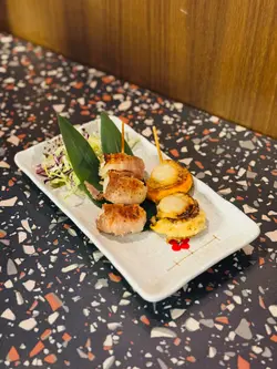 🌟呢次去咗旺角同朋友庆祝生日🎂,去咗呢间都开咗好耐既古今试下,估唔到旺角都揾到一间坐得耐又舒服又有心思既餐厅🍴龙卷风沙律($58)呢个系必点嘅前菜,钟意佢沙律菜里边有好多料,有中华沙律、蔬菜、脆片、蟹柳,加埋个沙律酱捞埋一齐超级丰富,大爱❤️蜘蛛($103)叫咗呢个卷物(炸软壳蟹、青瓜 🥒、牛油果、蟹柳),知道要庆祝生日🎉 餐厅仲好有心机咁样帮我哋画碟,真系好鬼贴心,开心🥳寿司薄饼($108)寿司饼底系炸咗嘅,上面嘅top放咗辣味三文鱼🍣辣味吞拿鱼及千岛酱海鲜,好惹味,钟意香口野既朋友就唔好错过啦蒜香牛油烧帆立贝($42)帆立贝烧得啱啱好夹埋牛油🧈同香蒜味,真系好脷脷味呀😝鹿儿岛黑豚荔枝卷串烧($32)全场最MVP我系拣左呢个荔枝卷串烧,真系好味到爆炸,出边嘅黑豚肉包住咗荔枝肉,咬落去咸甜味道丰富之余,仲要爆汁,唔叫真系对唔住自己呀❤️❤️豚肉泡菜锅($196)杂锦蔬菜盘(+$48)锅底的泡菜味道浓郁,辣中带酸,十分开胃。豚肉切得薄,煮熟后肉质鲜嫩,同泡菜的搭配非常和谐。锅中仲有豆腐、香菇,同其他蔬菜杂菜盘,加埋蔬菜落去就唔会食得咁腻啦😎…查看更多