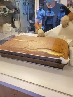 难得入屯门探朋友,朋友话呢间古早记话蛋糕好好味,加上排20分钟就有最爱芝士味蛋糕出炉,就试下先😉😉👉平均要30分钟先出一底蛋糕,每底蛋糕切开10份,所以如果迟左就要等下底啦!蛋糕准时出炉⏰⏰,师傅捧著热辣辣嘅蛋糕出场,隔著块玻璃都闻到好香蛋味,加上切开时蛋糕超松软有弹性,虽说要$70一件,但好大件🥳🥳职员好快手包装入袋,并故意漏开纸盒口,免生蒸气,我们好快拎回家享用,一打开纸盒蛋香朴鼻 ,口感绵密,结构软熟,不会太甜,可惜芝士味不太突出,整体来说,有时间排队一试无防🥰🥰…查看更多