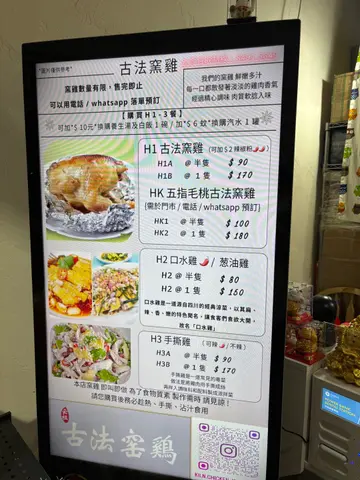 古法窑鸡地点:元朗元朗裕荣径11号17号舖好旺洋楼今日路过发现一间古法窑鸡小店,见到好吸引买咗佢哋嘅招牌古法窑鸡($170 -只)同手撕鸡($90 半只)。窑鸡系即叫即焗,等咗大约20分钟,拎返屋企仲系热辣辣,用锡纸包住包得好好,我喺楼下一打开锡纸超香就连我爸爸喺2楼都闻到,鸡肉超级嫩滑,超多肉汁得嚟唔油腻,连平时最易柴嘅鸡胸都保持到湿润多汁,完全冇失望。手撕鸡我拣咗小辣,味道够惹味,辣得啱啱好,鸡皮同鸡肉都超弹牙,口感一流!真系好好食!😋😋😋推荐🌟🌟🌟🌟🌟…Read More