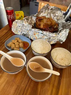 呢间餐厅既「古法窑鸡二人套餐」可谓诚意十足!主角窑鸡上桌时用锡住包住,保持温度,一打开锡纸就闻到香味,仲冒著热气,徒手撕开瞬间肉汁四溢,鸡皮带著淡淡炭香,肉质嫩滑不柴,腌料咸香入味,最惊喜是鸡胸部位也能保持湿润,可见火候掌控得宜。小食拣左炸豆腐,豆腐外酥内嫩,撒上椒盐同七味粉更显风味;今晚既养生汤系粉葛猪骨汤,汤底熬得杰身浓郁,饮得到传统老火汤既温润甘甜。搭配两碗白饭和冰凉饮品,份量对两个人黎讲相当饱。…Read More