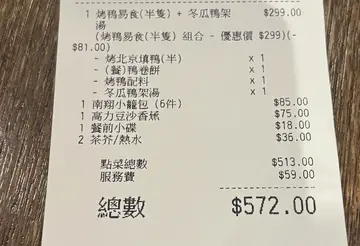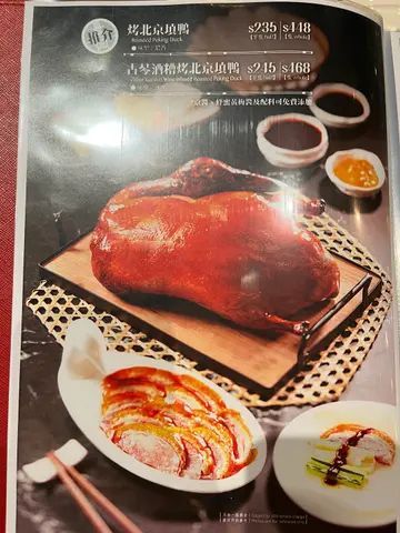 老公最爱食北京烤鸭,今次找到有多分店的古琴雅苑。见到最新夏季套餐餐牌几吸引,8月限时订座优惠,4位或以上会送北京烤鸭半只,下次一于带埋爸爸妈妈一齐食就够4人。一场来到一定要点半只烤鸭,其实半只份量都几足够,连皮带肉很多片,还有净皮及净肉,烤得很香,而且欣赏连酸梅酱都有,非常细心。南翔小笼包,咬开汤不算特别多,但胜在不是味精汤,不会过咸,都算鲜甜。黑醋骨非常惹味,老公觉得如果排骨再多点脂肪会更好。茶选了荔枝玫瑰,很罕有的茶,我自己很喜欢。豆沙窝饼,新鲜整好,皮软红豆馅又不算很甜,所以多多都食得到。其实很想试埋金腿浓汤津白,不过得两个人,不敢叫得太多。食物整体很满意,下次会带家人试夏季套餐。