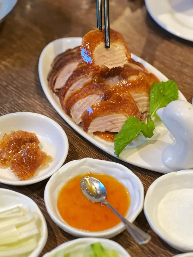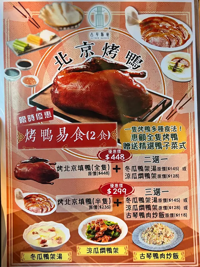 諗到食北京填鴨,一定係位於灣仔QRE Plaza19樓嘅古琴雅苑😋 而且訂座優惠架!佢哋選用上乘北京填鴨,以傳統掛爐烤製,烤鴨新鮮出爐,鴨肉肥而不膩、外酥內嫩的烤鴨,我最鐘意配上清新的青瓜同香甜嘅哈蜜瓜,一定要加佢哋獨有嘅蜂蜜黃梅醬同京醬,真係口感層次分明、而且非常豐富。而鴨架我選擇用港式嘅蒜頭涼瓜去炒。另外皮薄勁juicy嘅小籠包同三色炒年糕各具特色。全部都係必要之選,都係我嘅心水!yummy ,所以成日都高朋滿座!記得訂定枱了! …查看更多