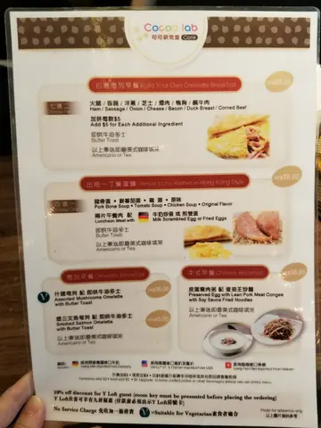 , 其实半年前试过早餐都系唔太好食 ,都见好耐冇试过, 谂住个日晚餐都好味可能有改进,所以大胆再试多次早餐🤔这间餐厅以快餐店形式去柜面购买嘢食, 买完之后会有人送餐到你枱面, 当时叫咗三个早餐因为其中有一个系小朋友,所以要求可否加钱转其他饮品比小朋友 例如朱古力奶或鲜奶, 而当其时侍应生态度一般又唔耐烦咁答我.......系唔可以😑后来我答: 我之前来食过,系可以加钱转鲜奶🤔佢扮听唔到冇答我, 那么我唯有叫咗一个柠檬水俾小朋友 早餐到咗先来一个肠仔烟肉奄列, 味道可以唔系太咸 ,但系块多士"微暖"