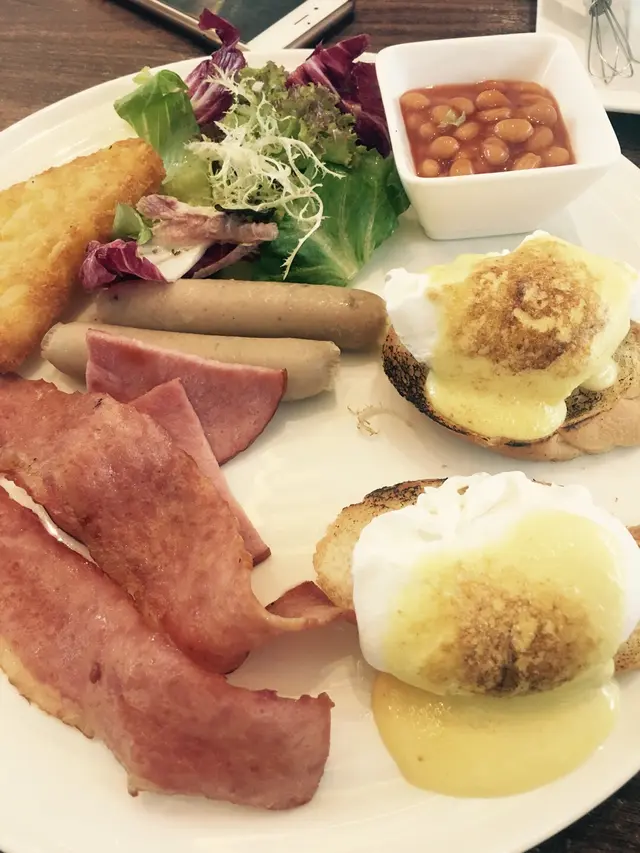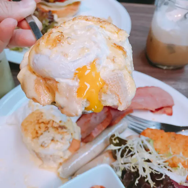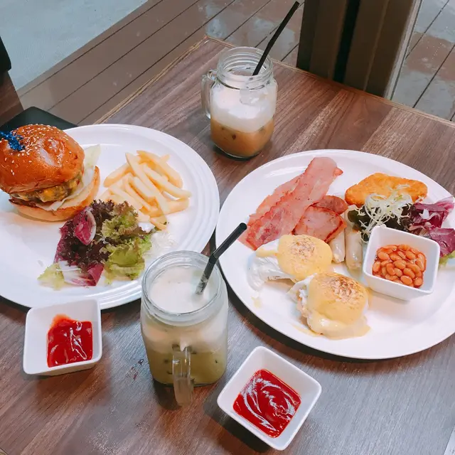 , 其實半年前試過早餐都係唔太好食 ,都見好耐冇試過, 諗住個日晚餐都好味可能有改進,所以大膽再試多次早餐🤔這間餐廳以快餐店形式去櫃面購買嘢食, 買完之後會有人送餐到你枱面, 當時叫咗三個早餐因為其中有一個係小朋友,所以要求可否加錢轉其他飲品比小朋友 例如朱古力奶或鮮奶, 而當其時侍應生態度一般又唔耐煩咁答我.......係唔可以😑後來我答: 我之前來食過,係可以加錢轉鮮奶🤔佢扮聽唔到冇答我, 那麼我唯有叫咗一個檸檬水俾小朋友 早餐到咗先來一個腸仔煙肉奄列, 味道可以唔係太鹹 ,但係塊多士"微暖"